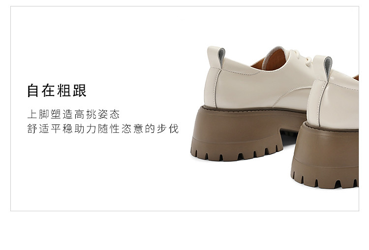 百丽质感牛津鞋女春夏英伦风粗跟增高单鞋 686042