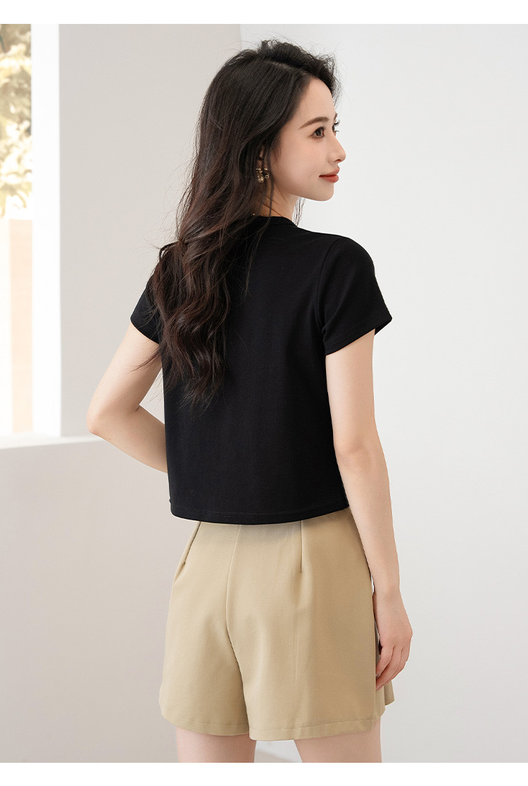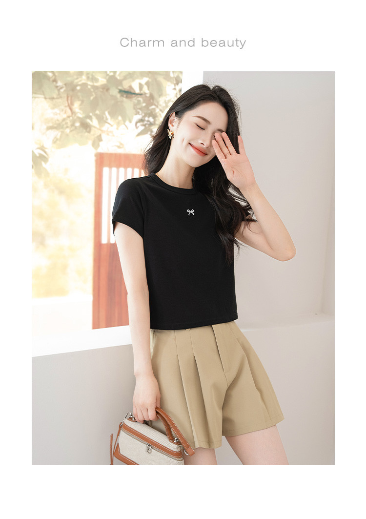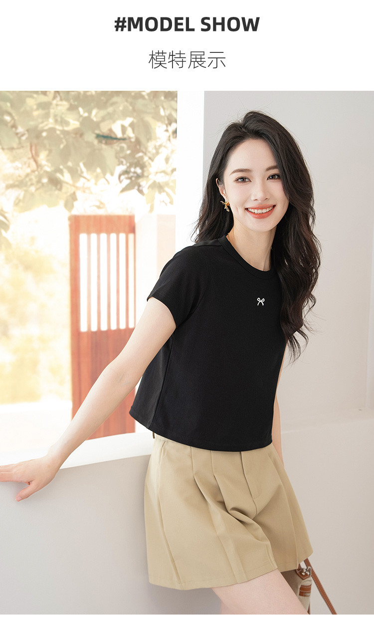 商品名称:纯色T恤女夏款辣妹休闲百搭修身显瘦圆领轻薄短袖 339608