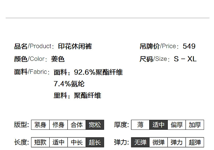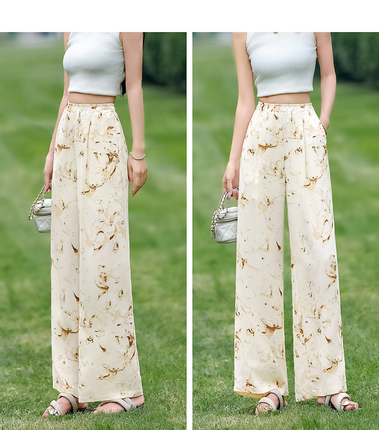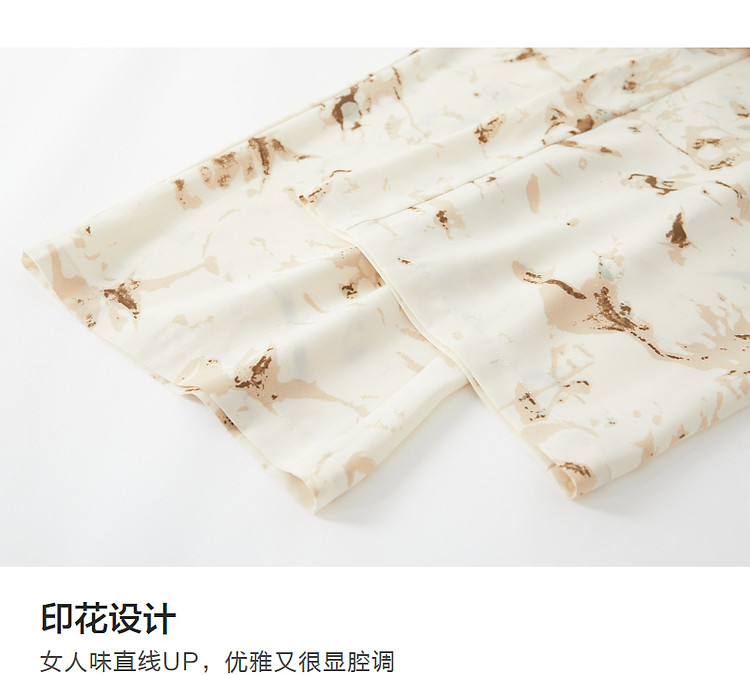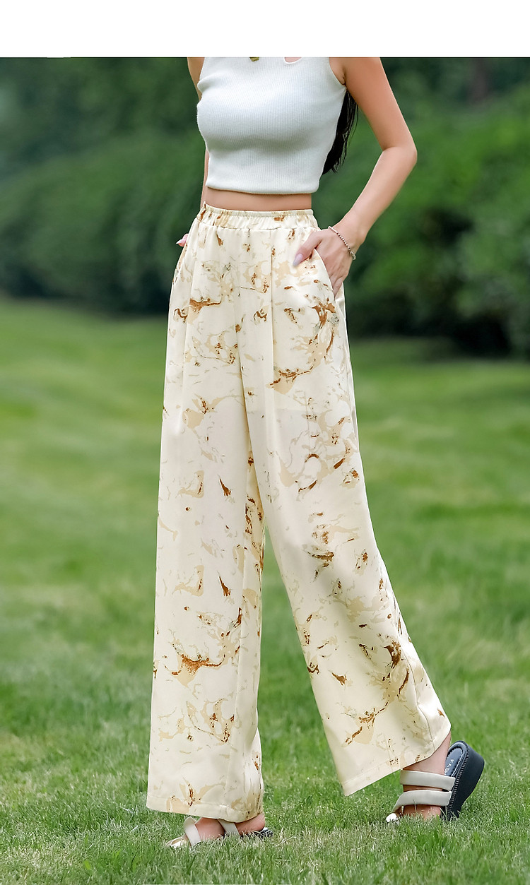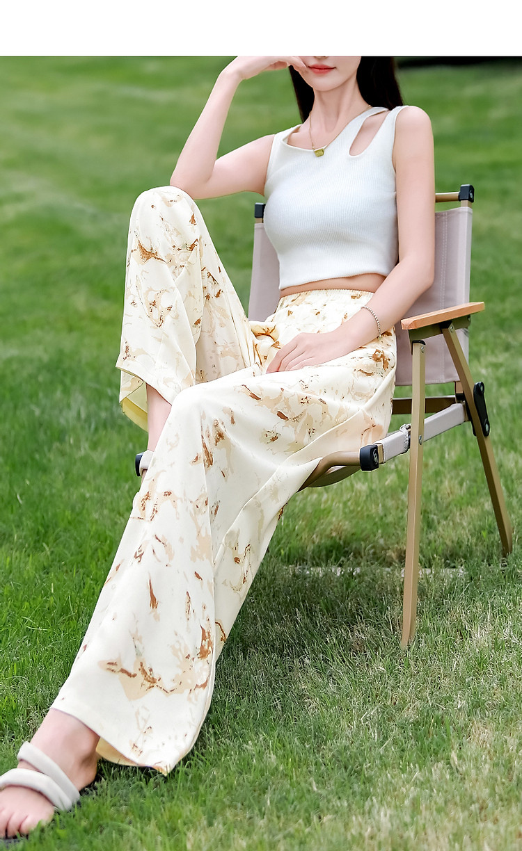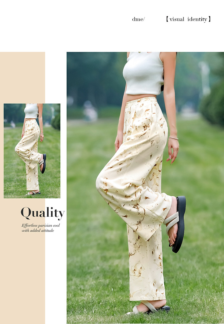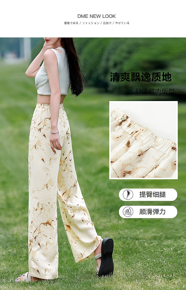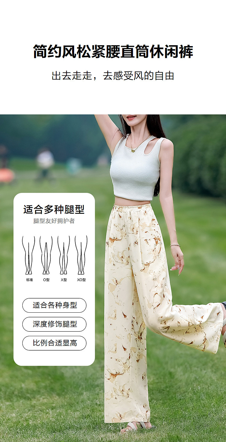 商品名称:【只见裤型/不见腿型】夏简约风松紧腰直筒印花清爽藏肉休闲裤女 373953