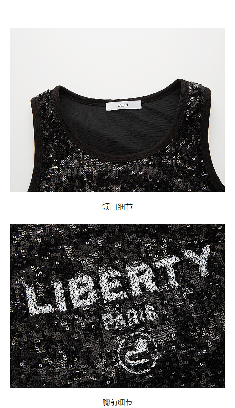 商品名称:地素珠片背心春季专柜潮流辣妹圆领背心无袖内搭上衣女 292235