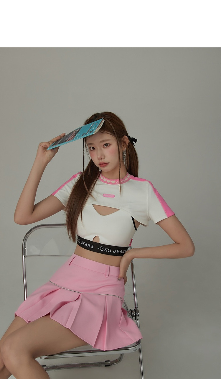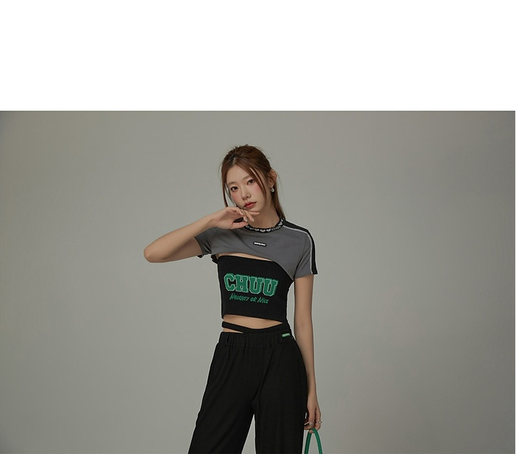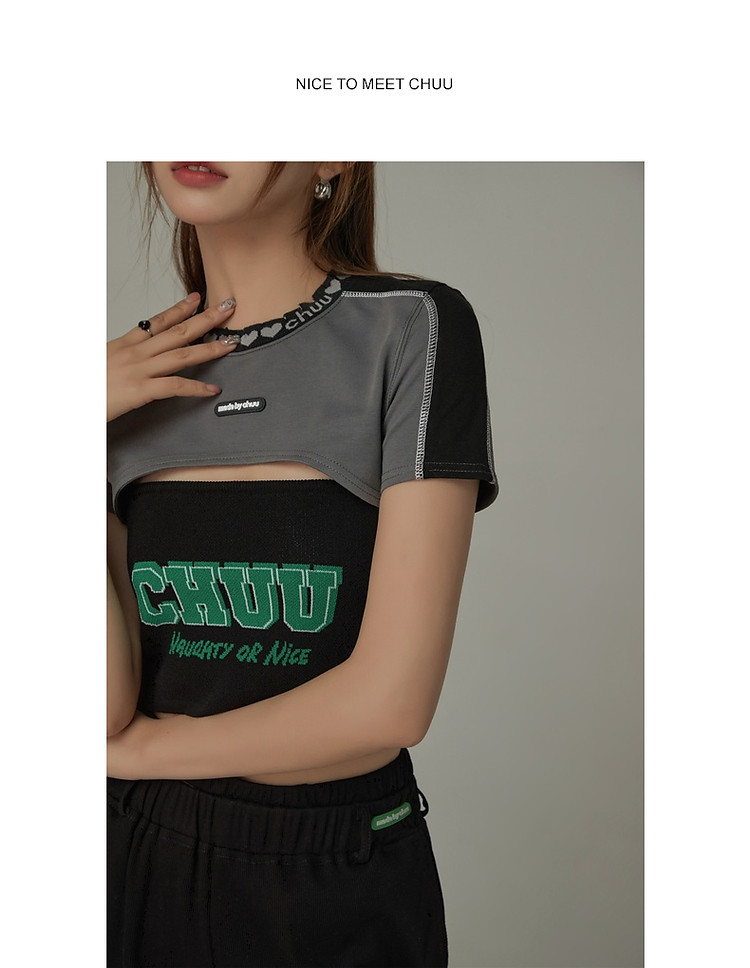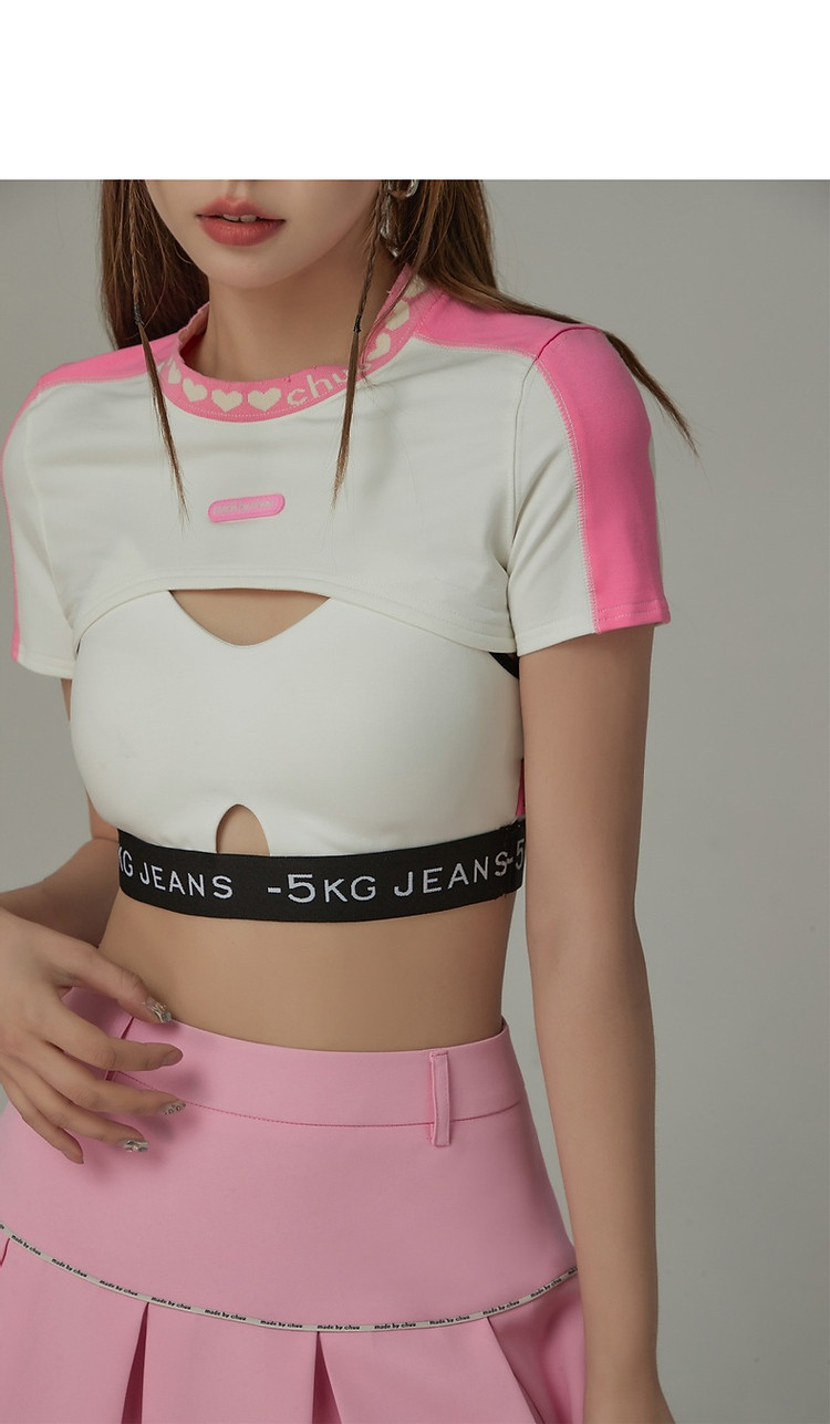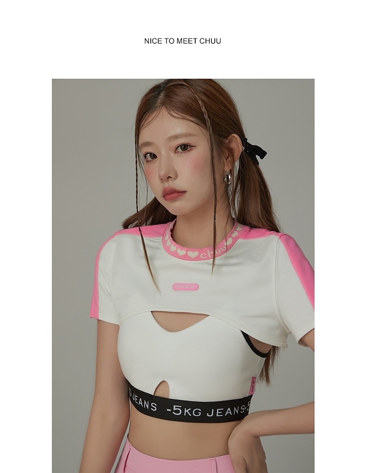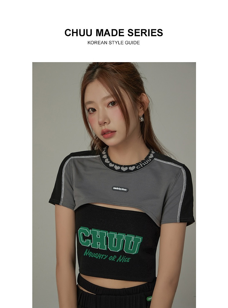 CHUU甜辣爱心T恤女春夏设计感撞色修身短款上衣 840915