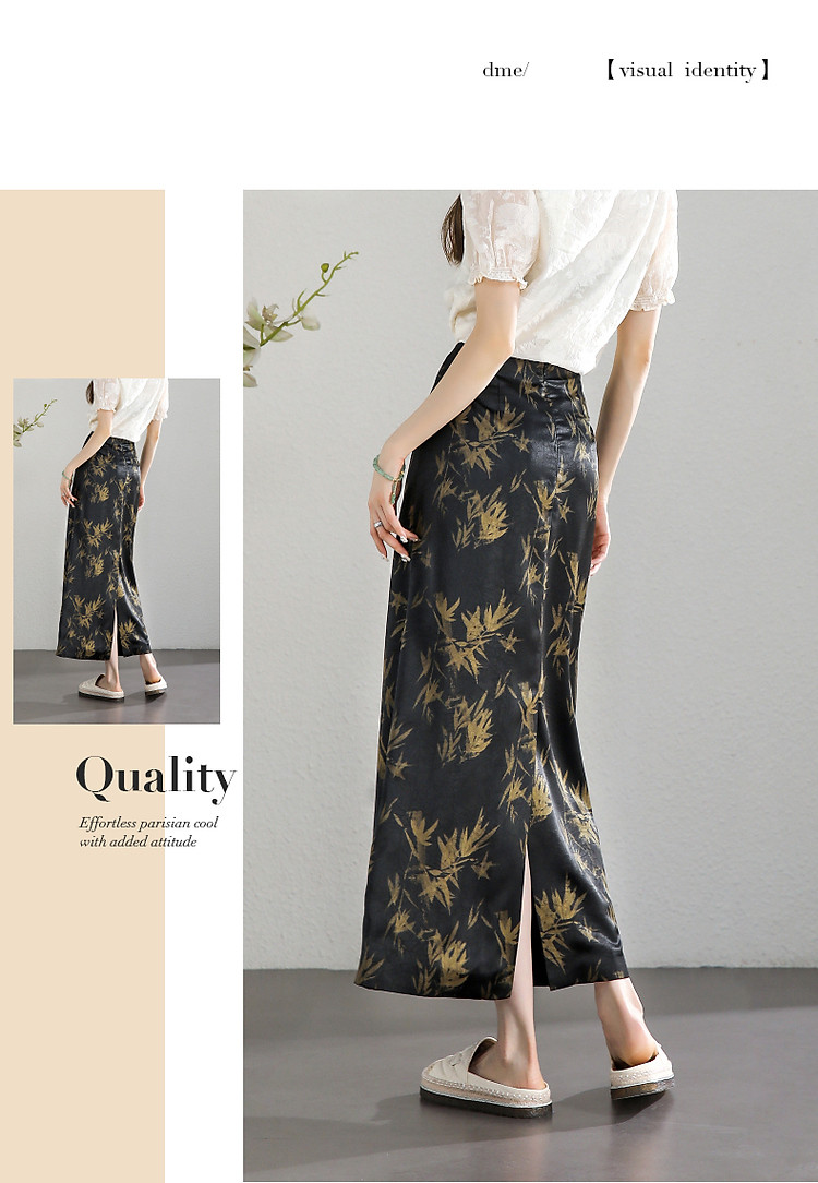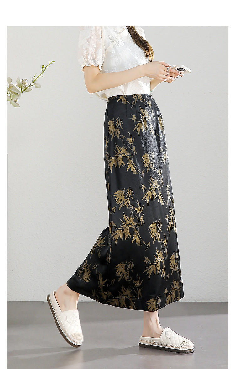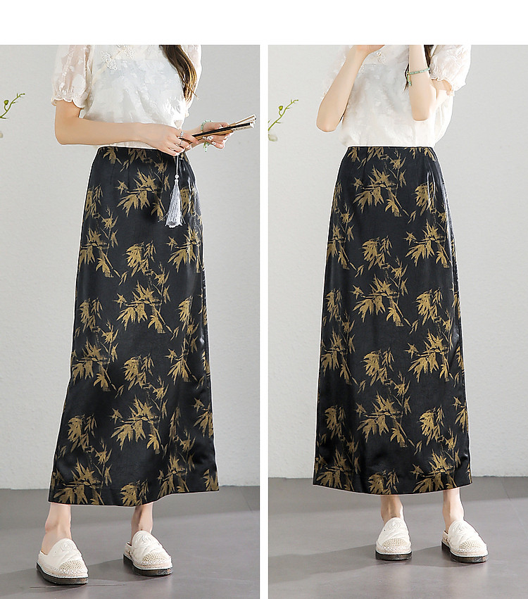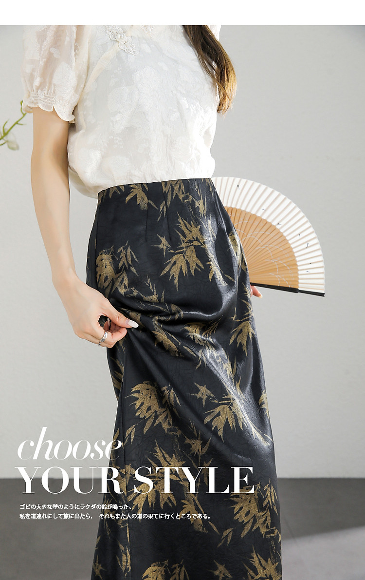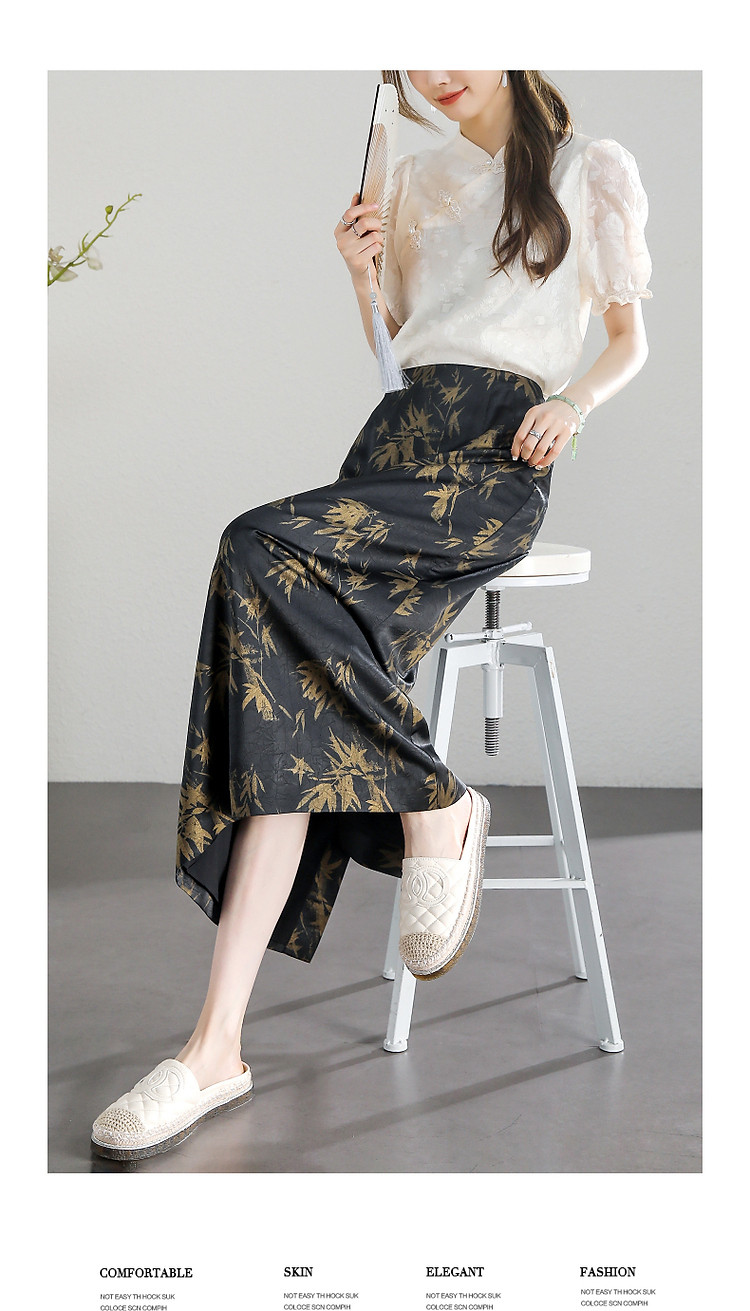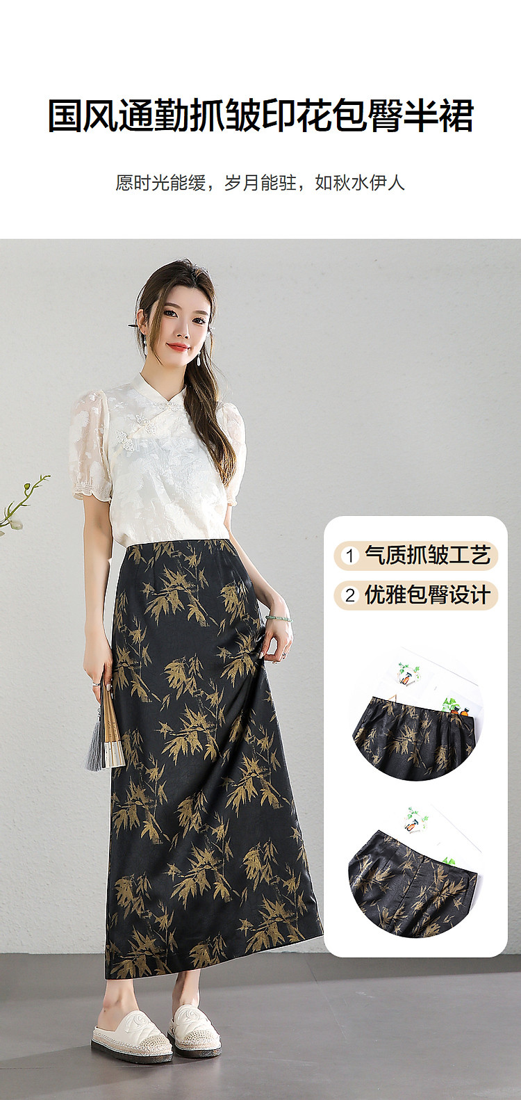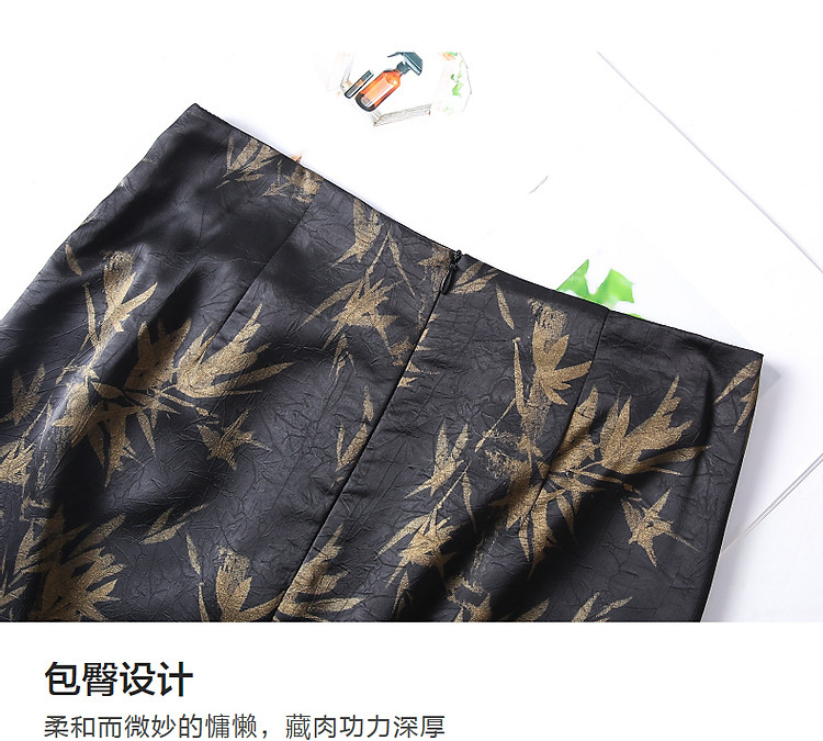 商品名称:【谩染鸦青】夏国风新中式通勤抓皱印花直筒包臀优雅女式半身裙 380545