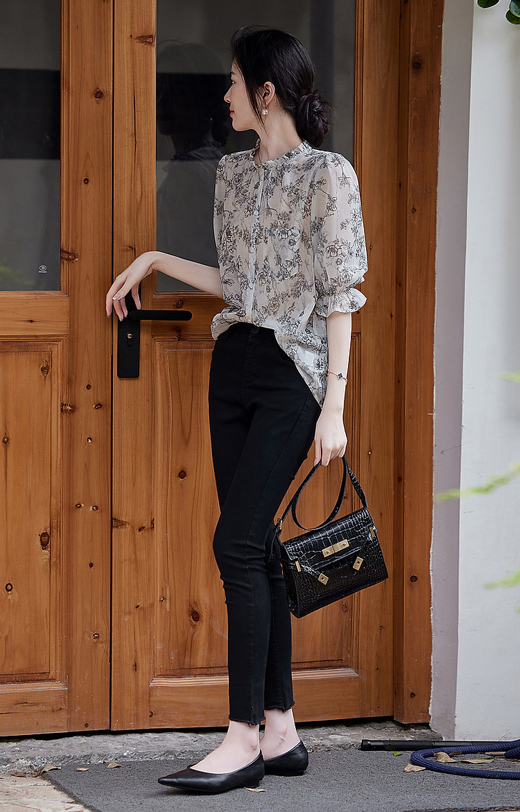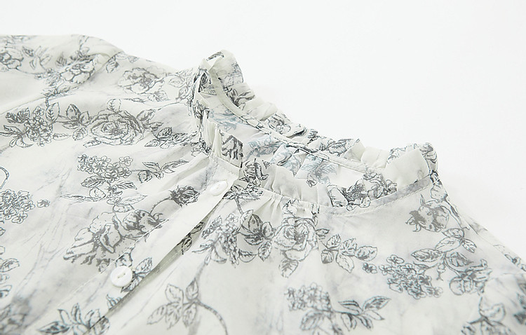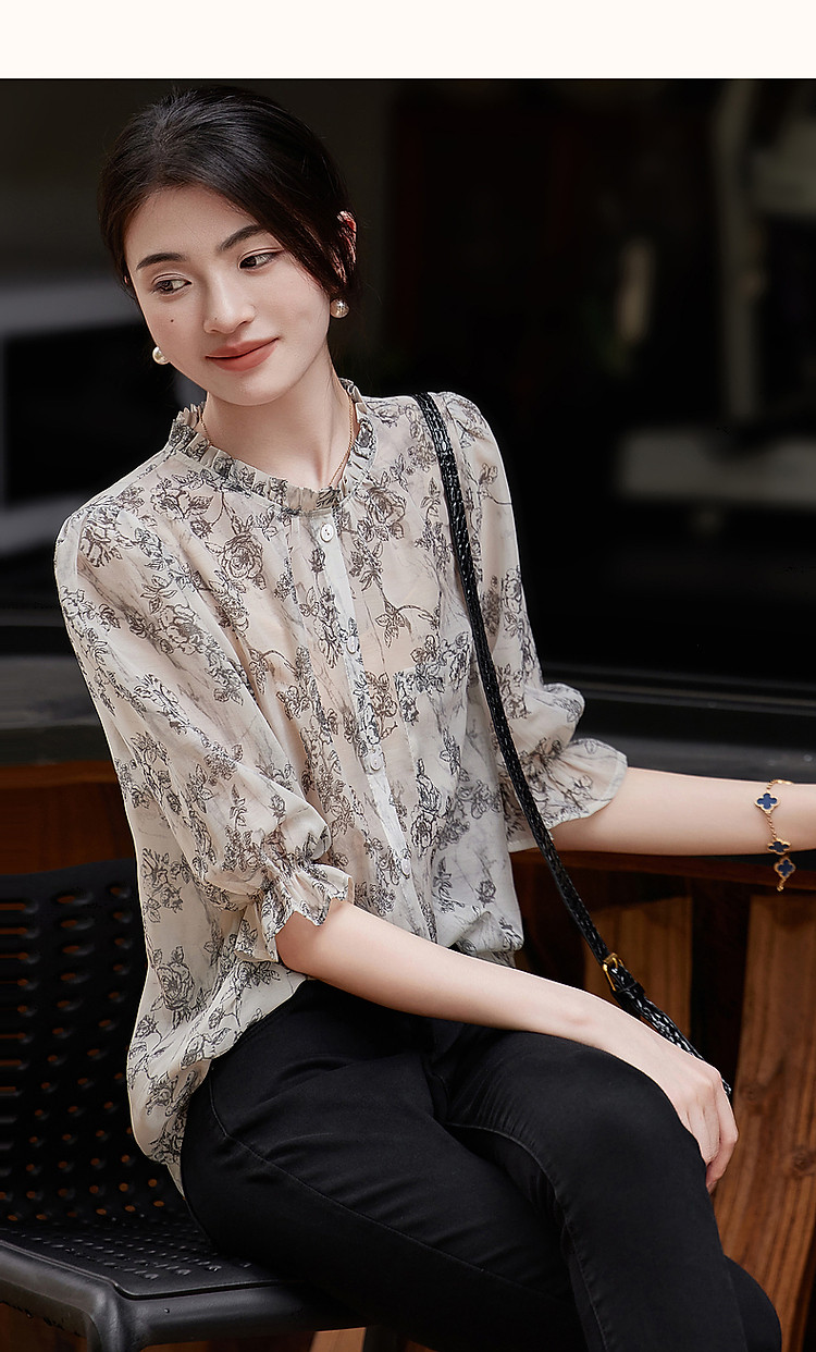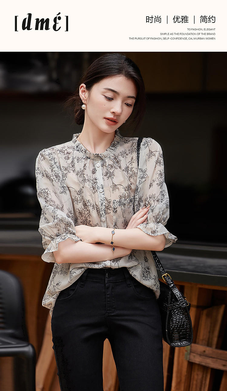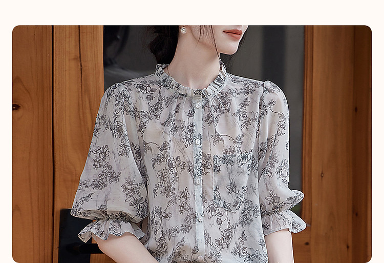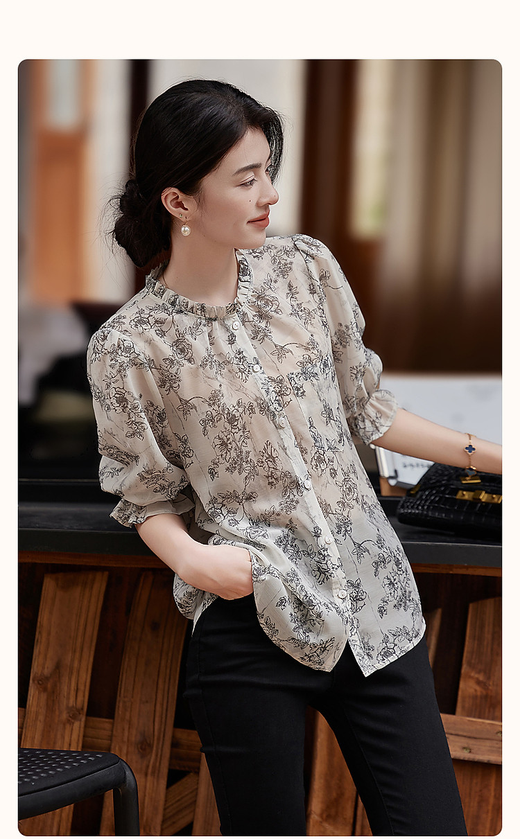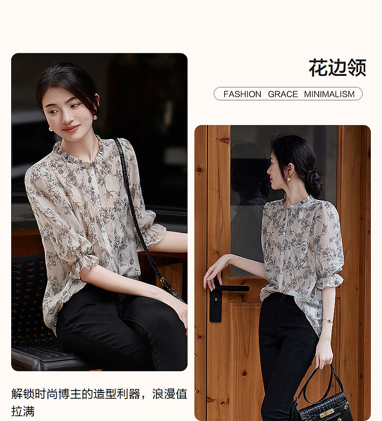 商品名称:【安之若素】夏法腔轻熟风花边领印花衬衫细腻舒爽藏肉衬衣女上衣 312513