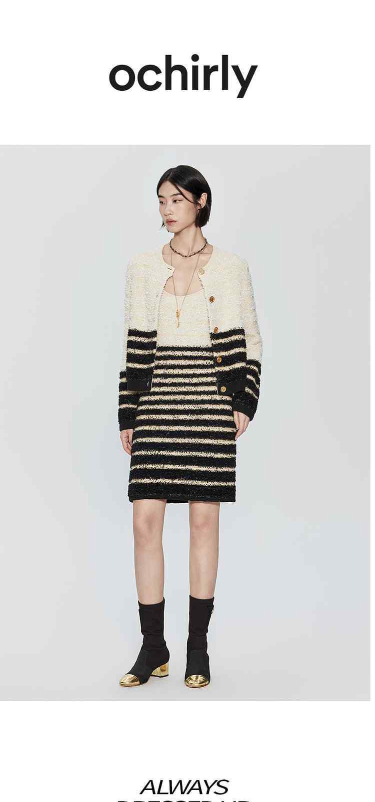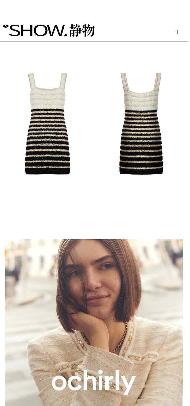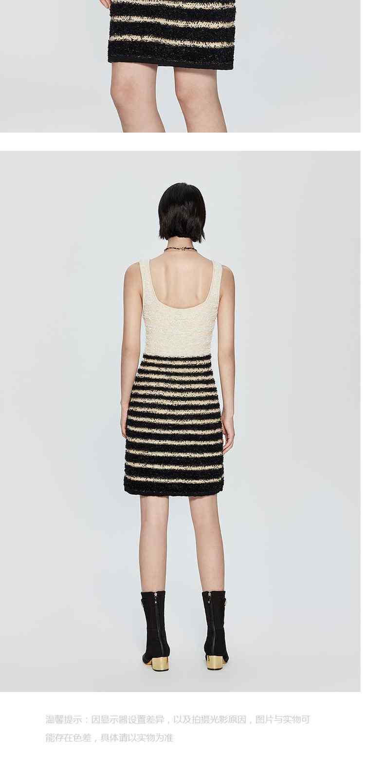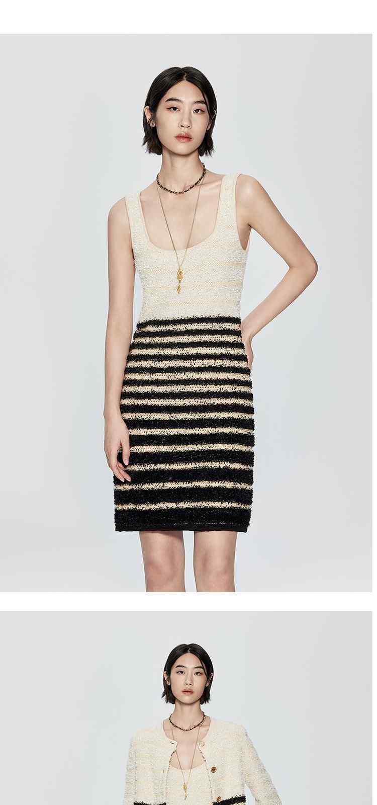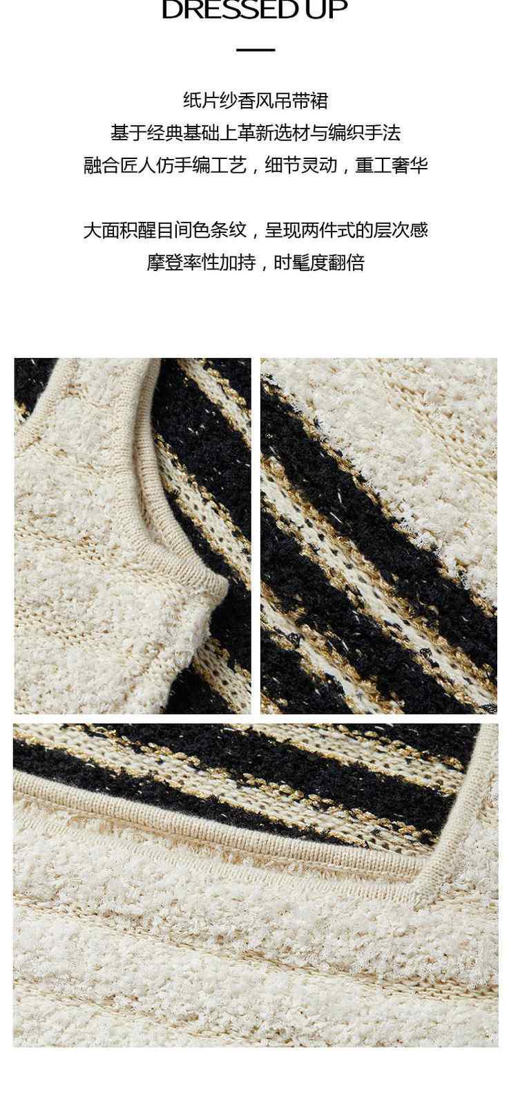商品名称:春季纸片纱金葱小香风条纹吊带针织连衣裙 594383