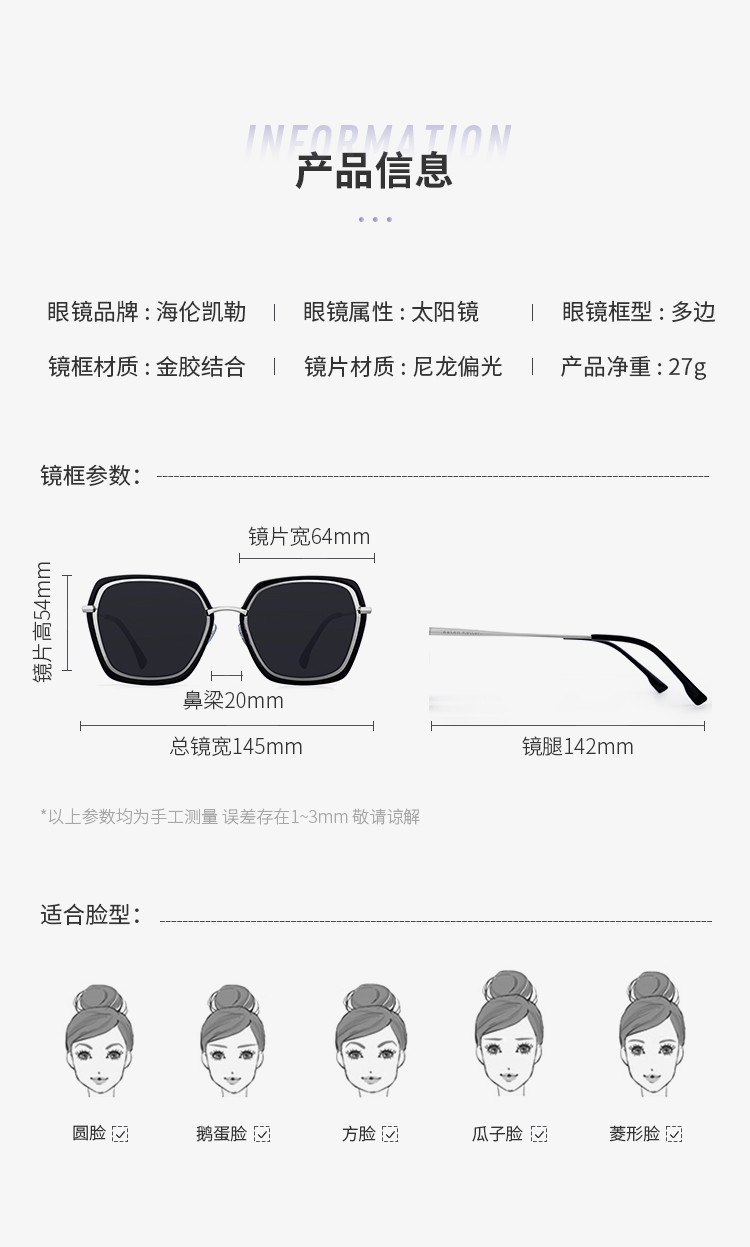 商品名称:海伦凯勒眼镜女款气质优雅驾驶偏光墨镜女士太阳镜女 095643