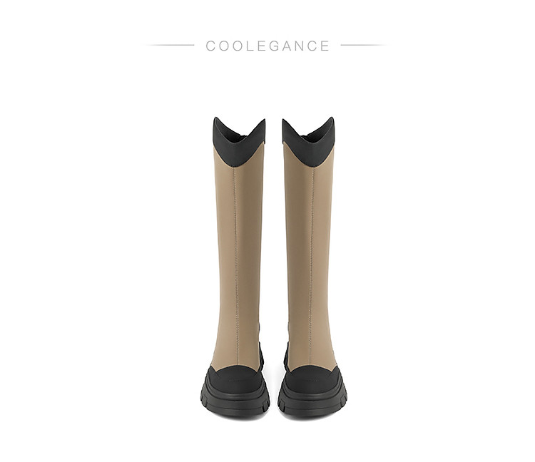 百丽真皮骑士靴女靴子英伦冬季黑色长筒靴加绒高长靴 336538