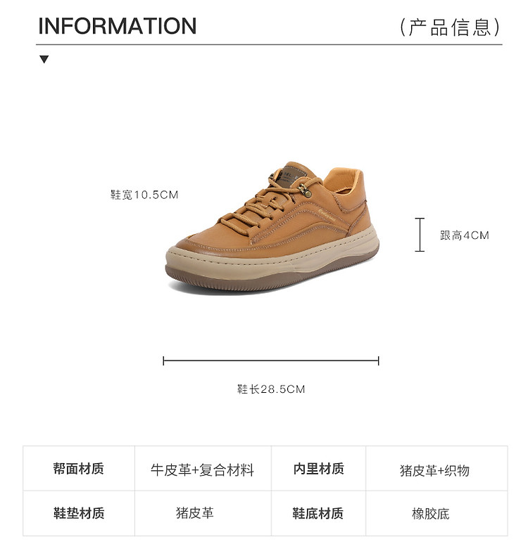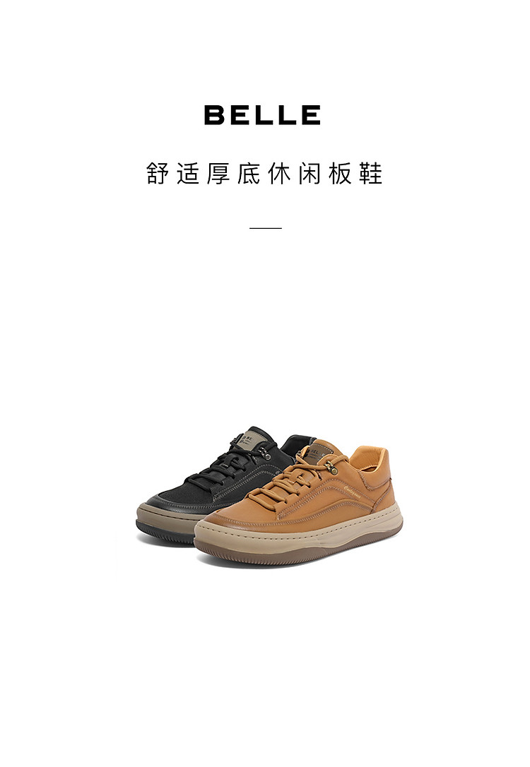 商品名称:【厚底增高】百丽男鞋复古工装休闲鞋男士春季舒适厚底低帮板鞋 193114