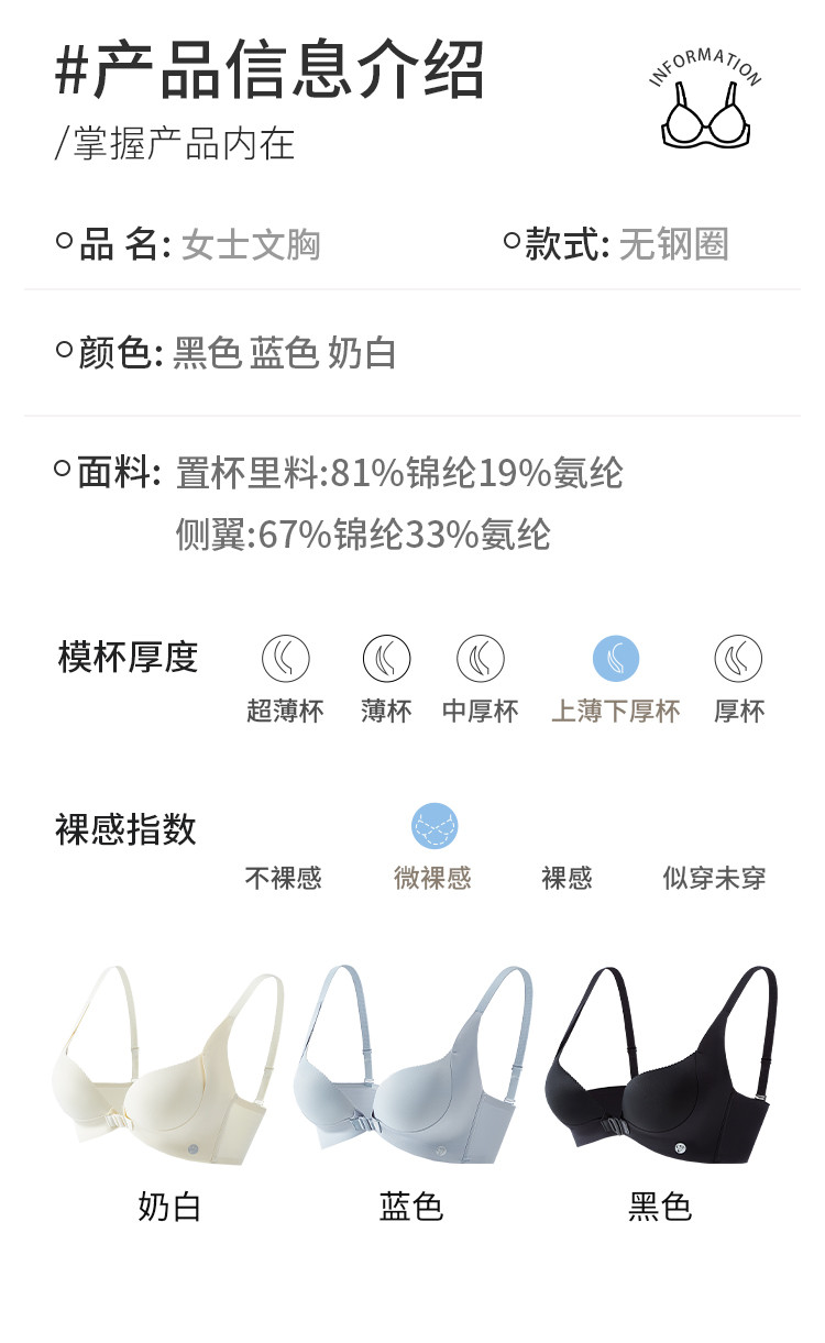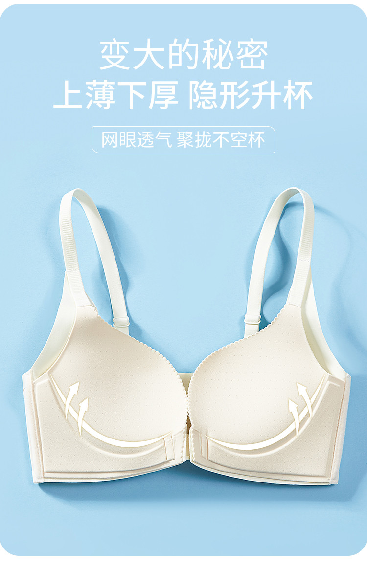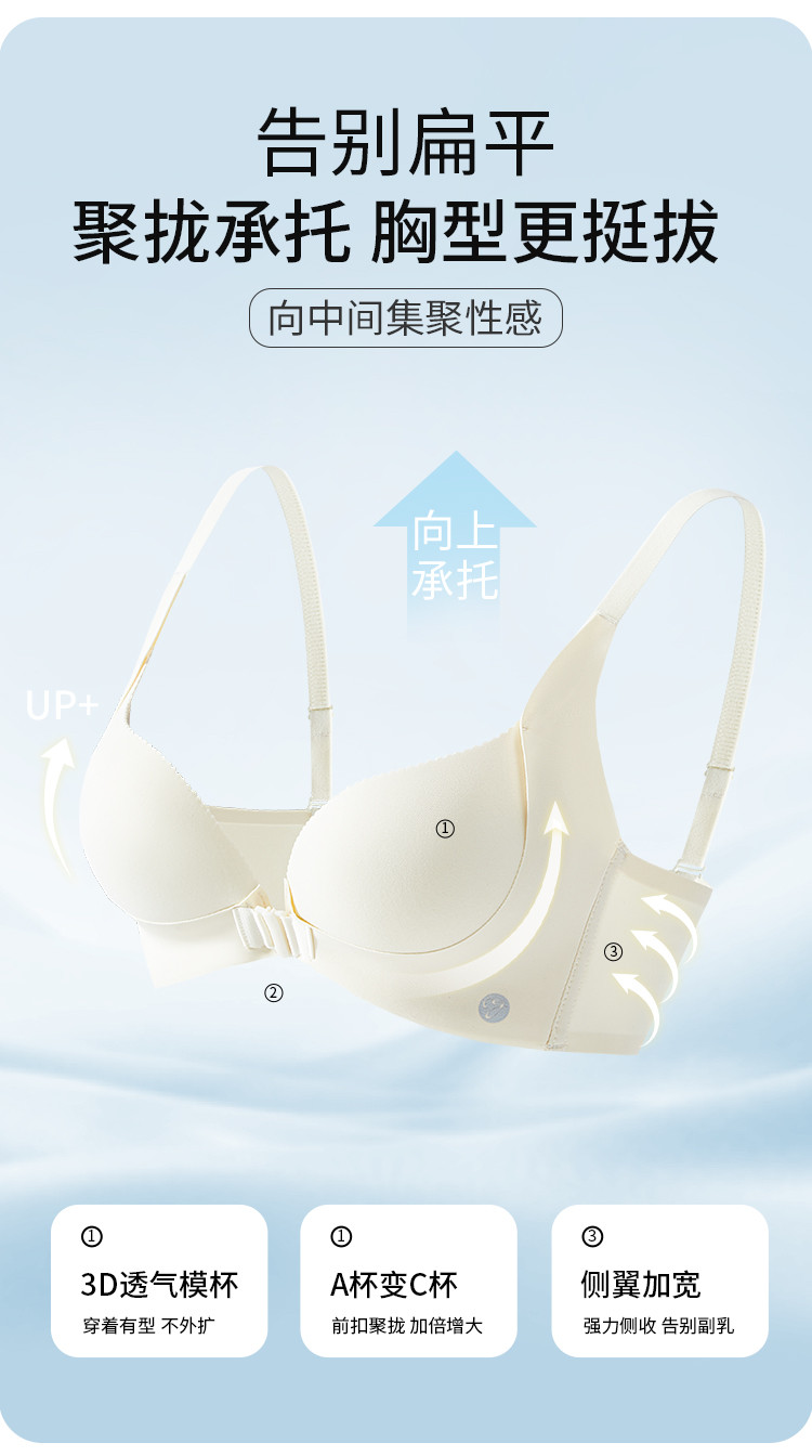 商品名称:【小胸厚聚】前扣内衣防下垂蜜桃胸无痕性感美背聚拢无钢圈文胸罩 940875