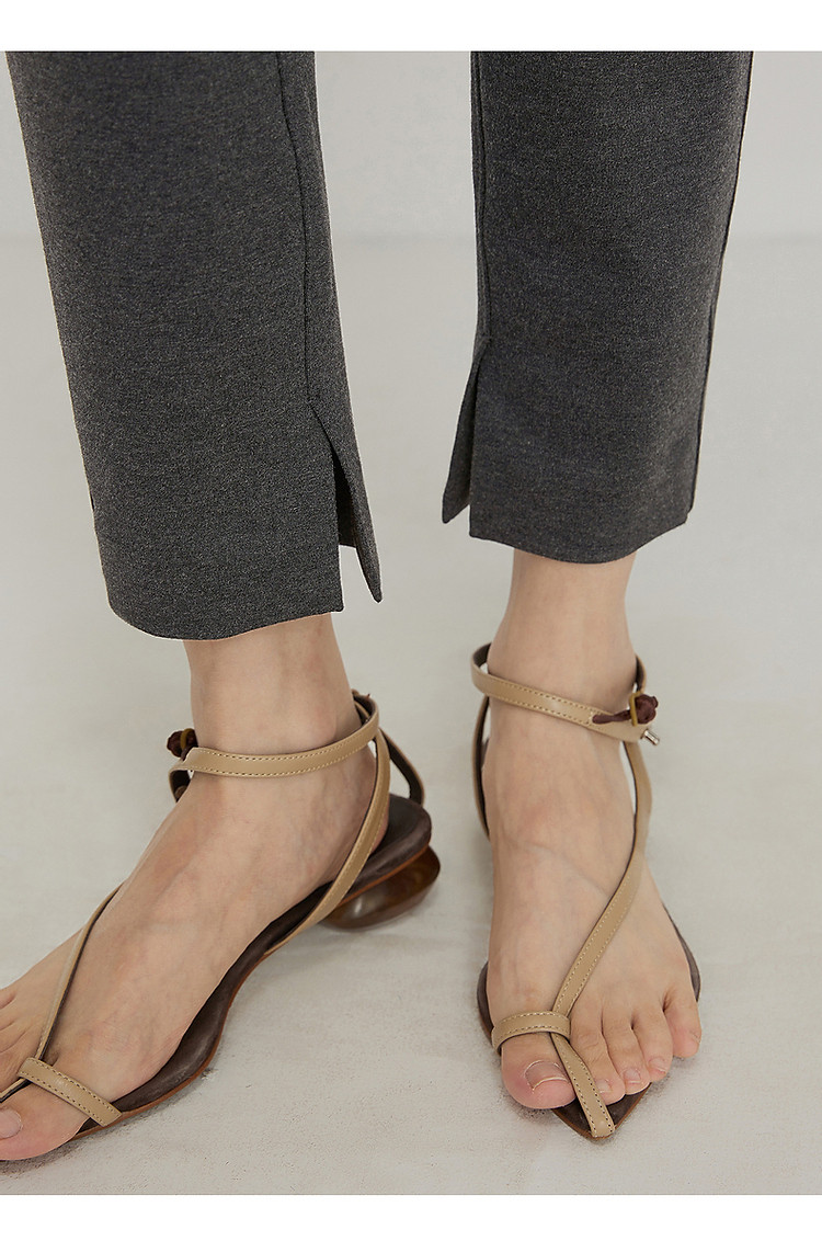 夏锥形裤舒适针织裤腿微开叉九分裤装女 189451