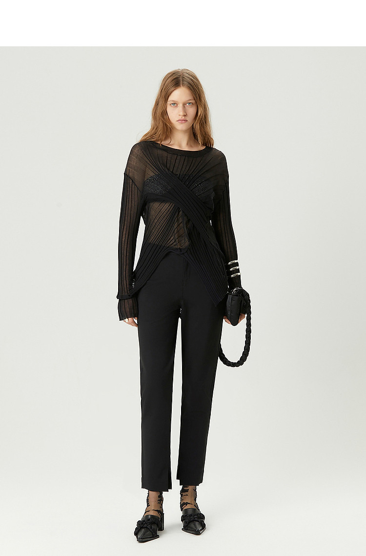 商品名称:夏锥形裤舒适针织裤腿微开叉九分裤装女 189451