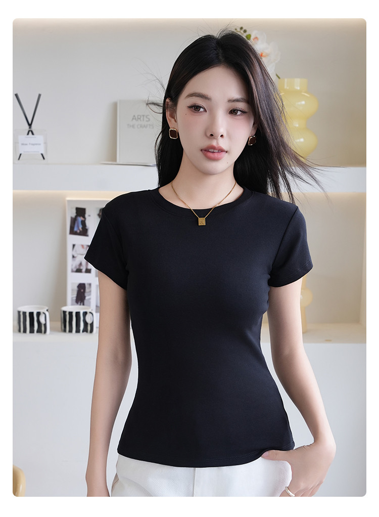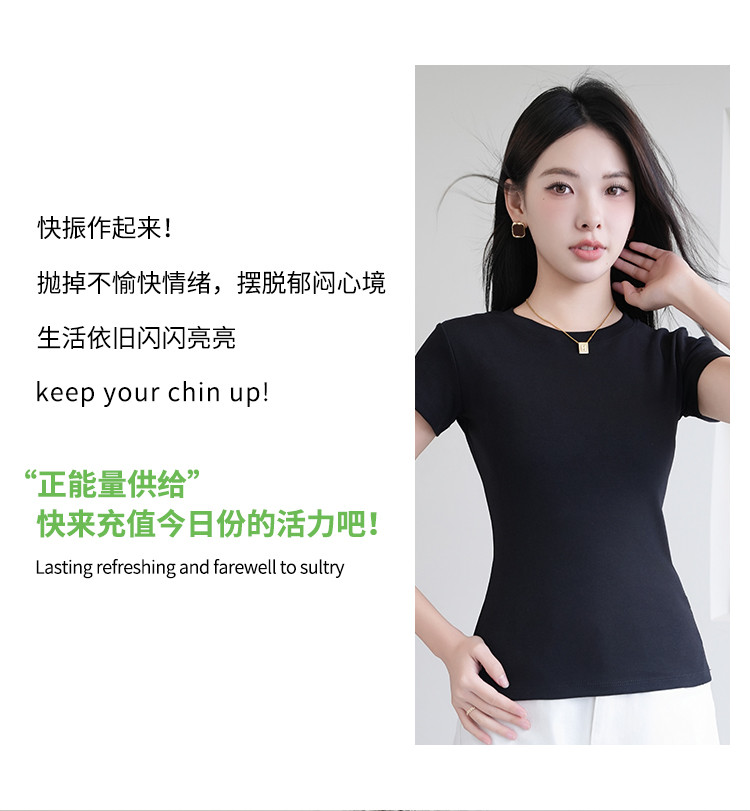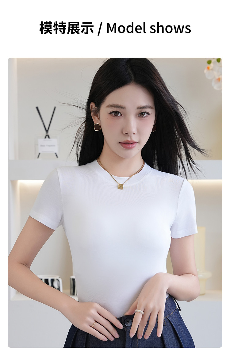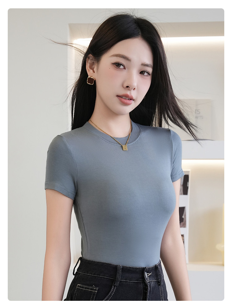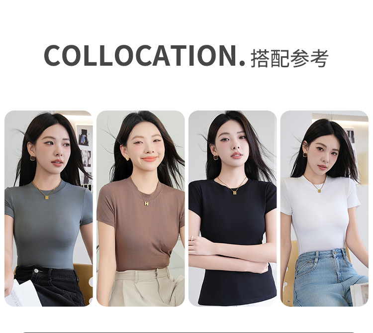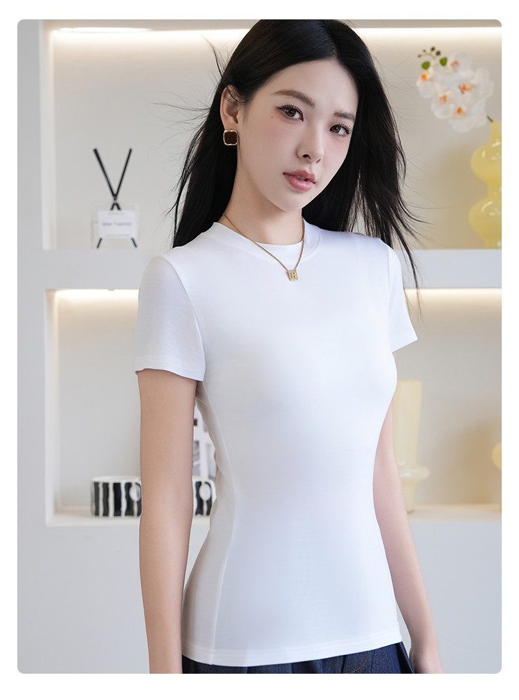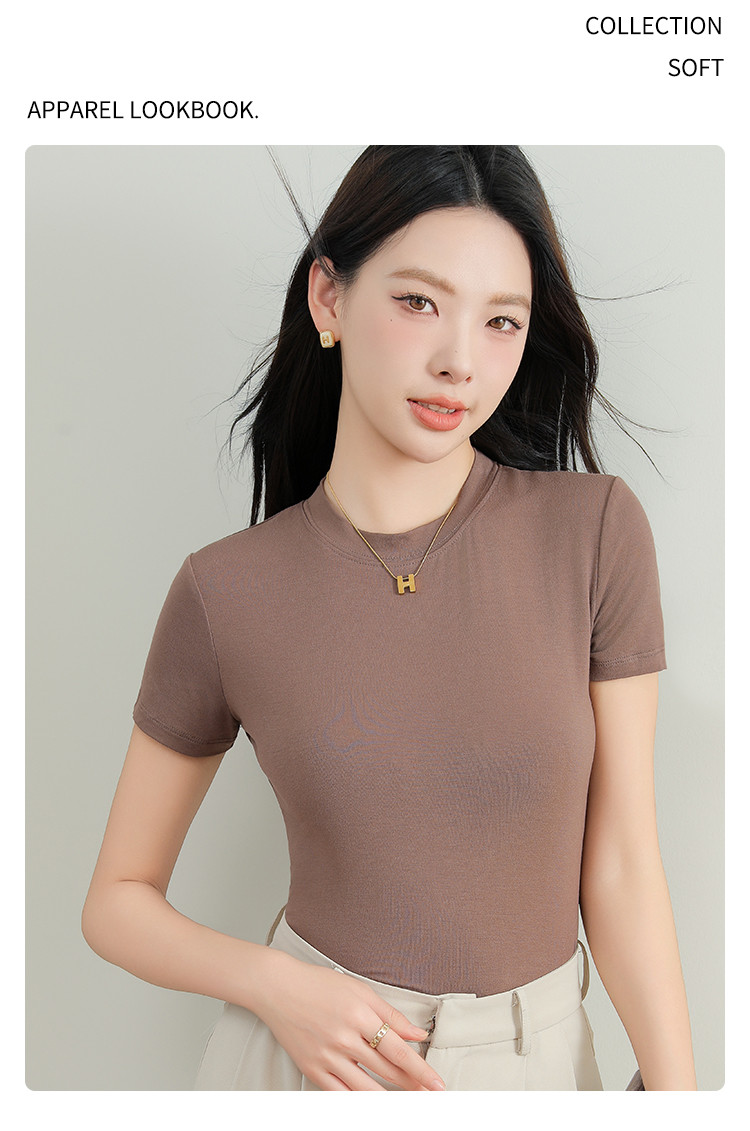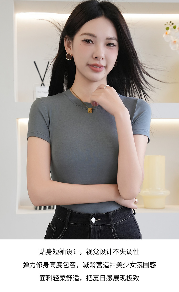 商品名称:夏季薄款女士圆领套头百搭休闲运动显瘦上衣小高领短袖打底衫T恤 503115