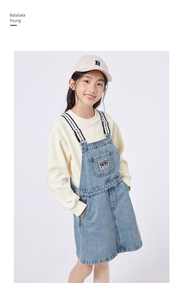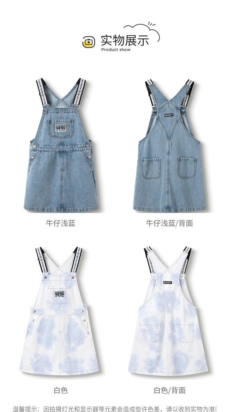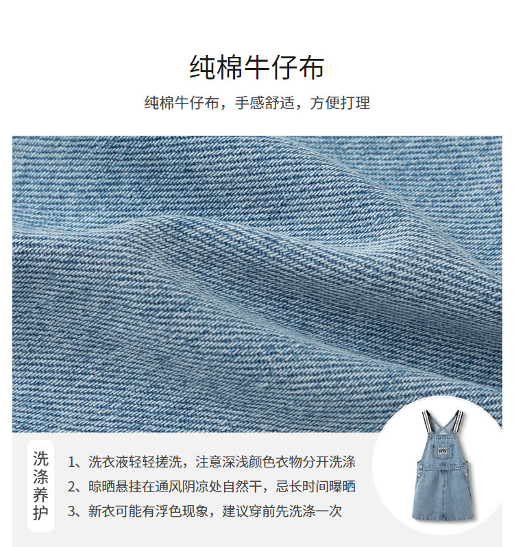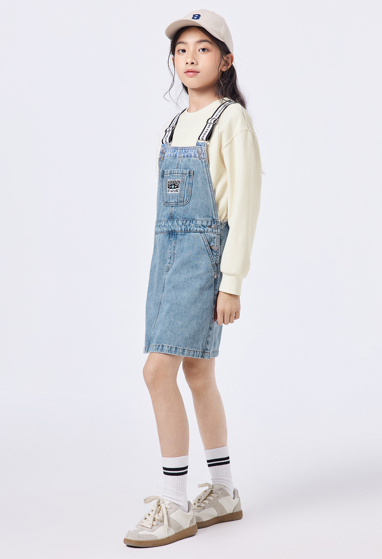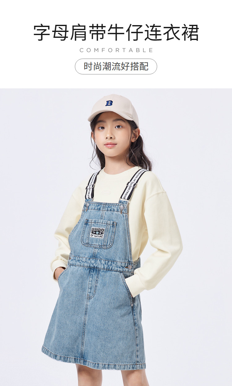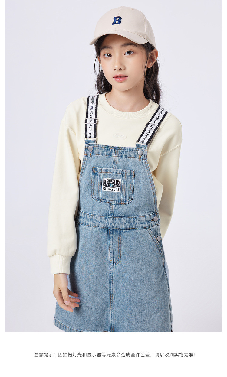 商品名称:纯棉牛仔背带裙女童秋季连衣裙儿童裙子中大童舒适宽肩带高级感 431237