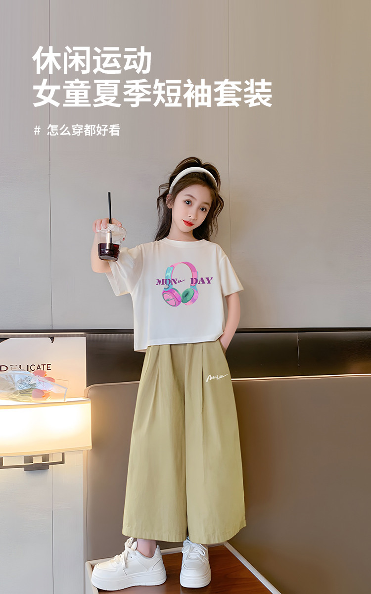 商品名称:童装女童套装时髦休闲短袖T恤+山本裤薄款两件套中大童夏季潮 110163