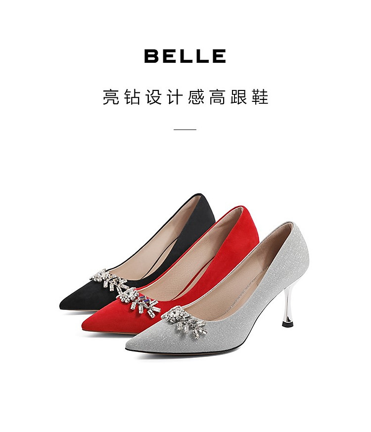 百丽水钻设计高跟鞋女春季商场同款典雅婚鞋 664474