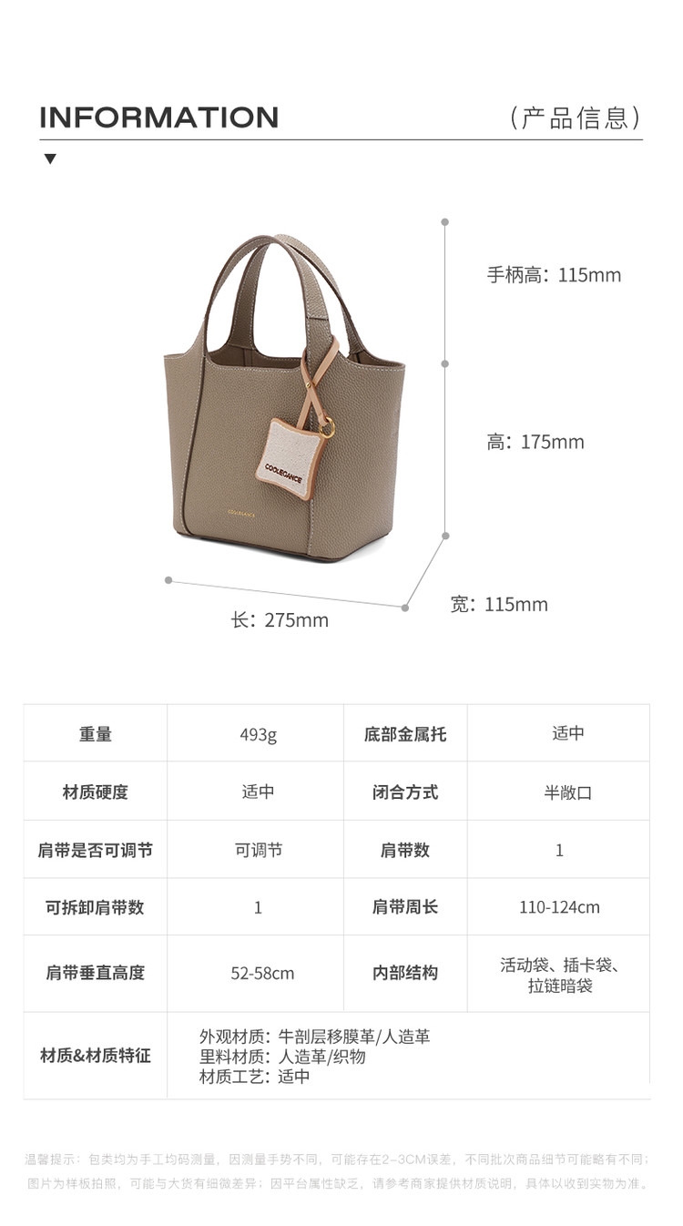 商品名称:【吐司家族】百丽春秋质感母亲节礼物手提包气质荔枝纹斜挎托特包 509338