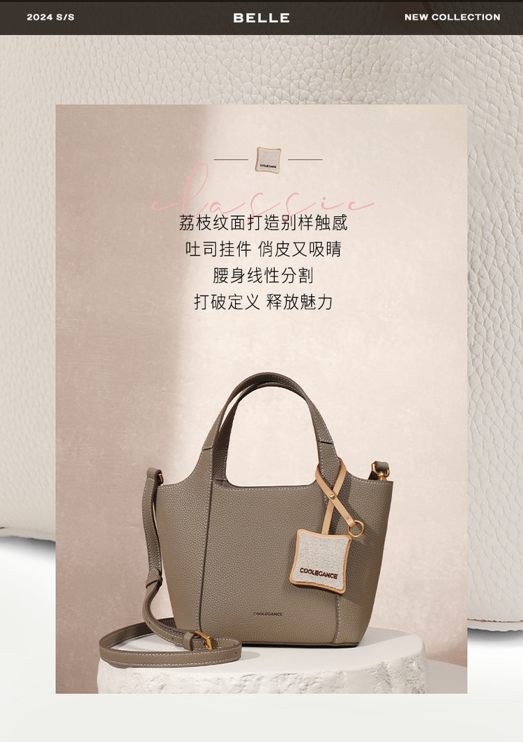 【吐司家族】百丽春秋质感母亲节礼物手提包气质荔枝纹斜挎托特包 509338
