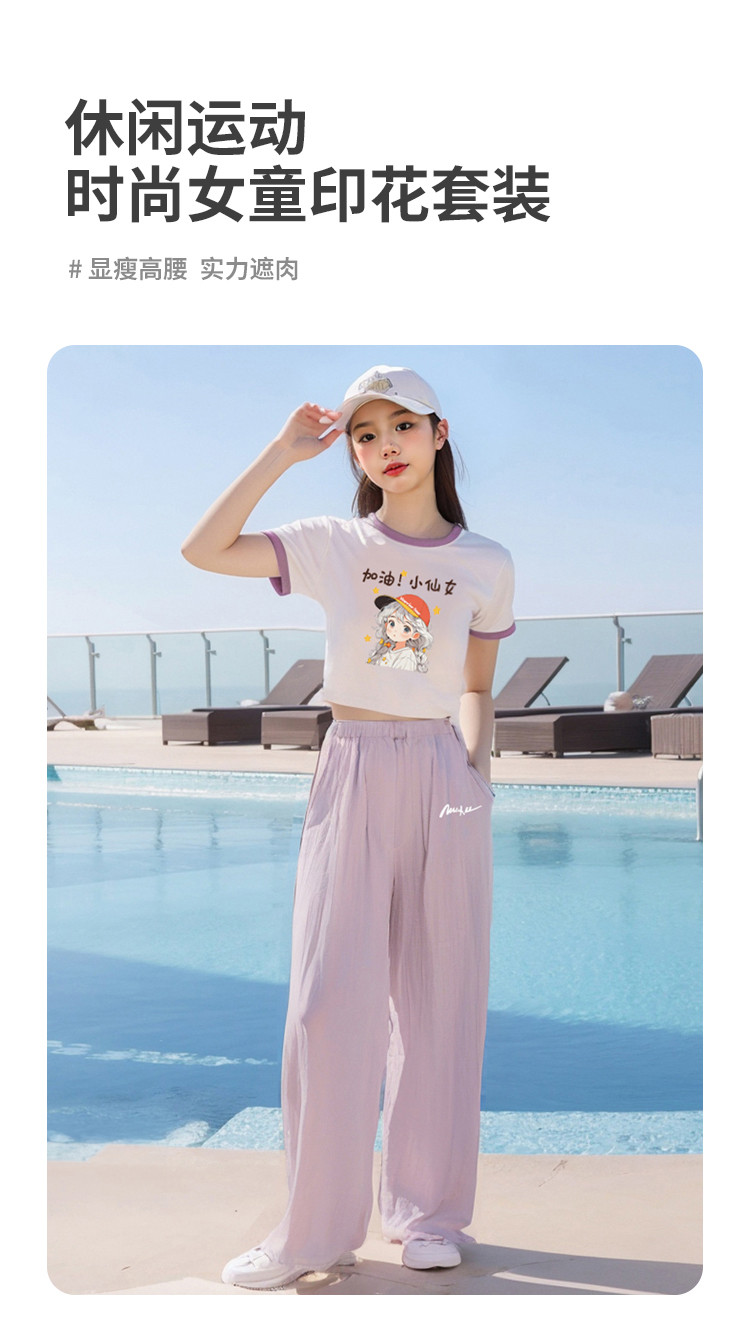 童装女童撞色套装韩版洋气短袖山本裤两件套夏季中大童百搭潮 106067