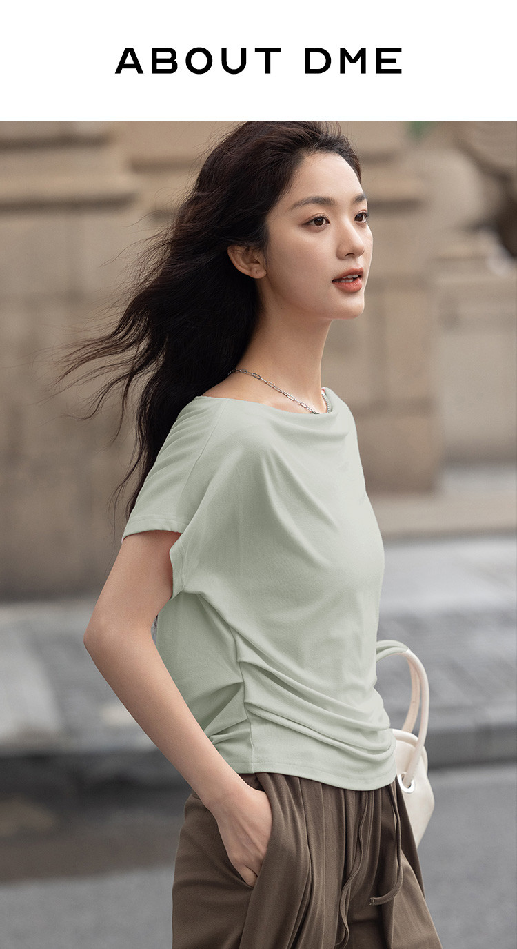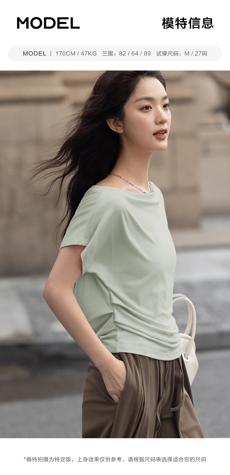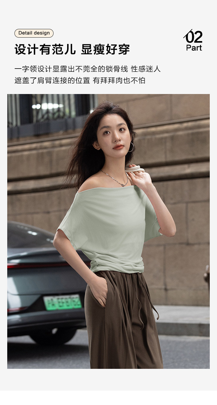【简约一字领上衣】夏气质通勤亲肤舒适连袖T恤女 465794