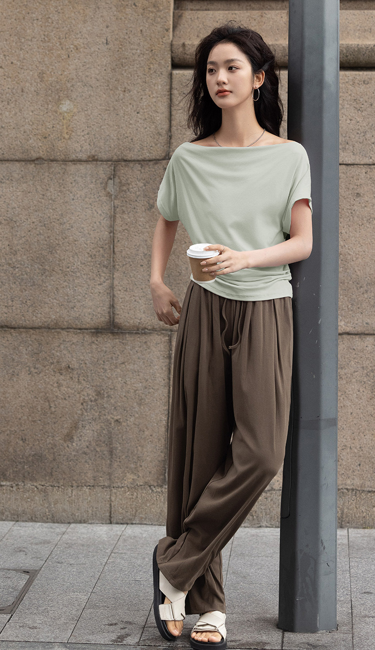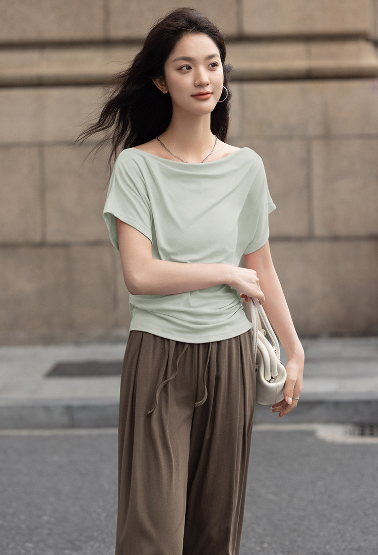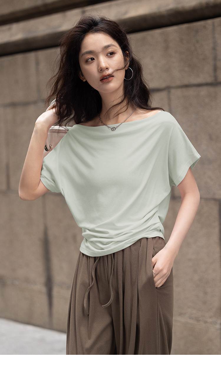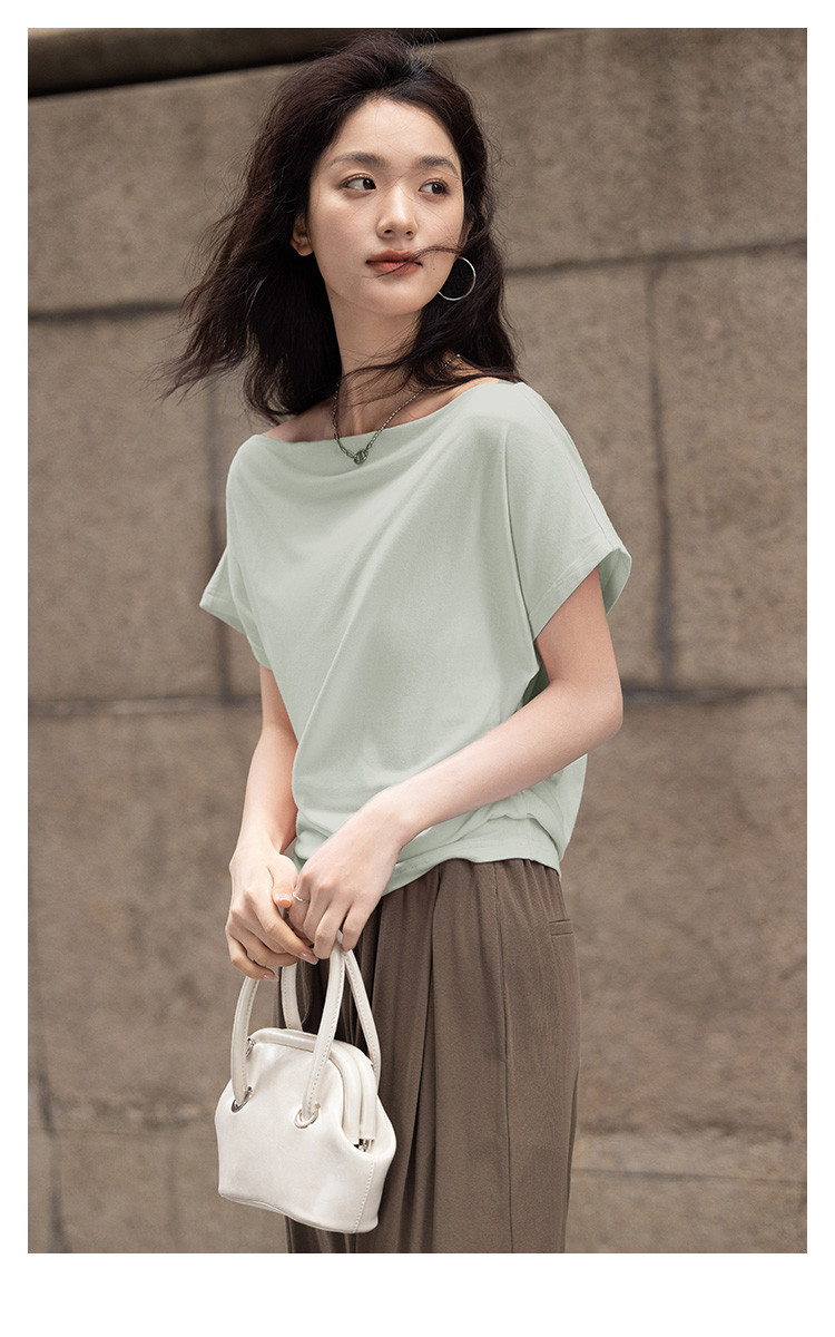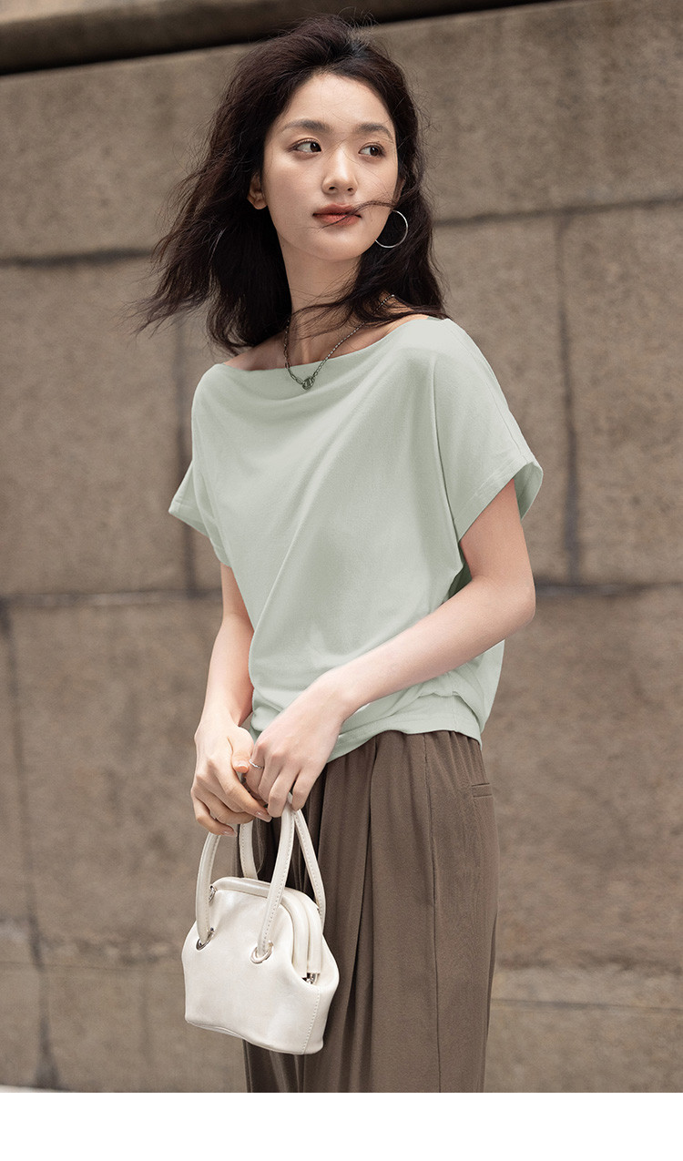 商品名称:【简约一字领上衣】夏气质通勤亲肤舒适连袖T恤女 465794