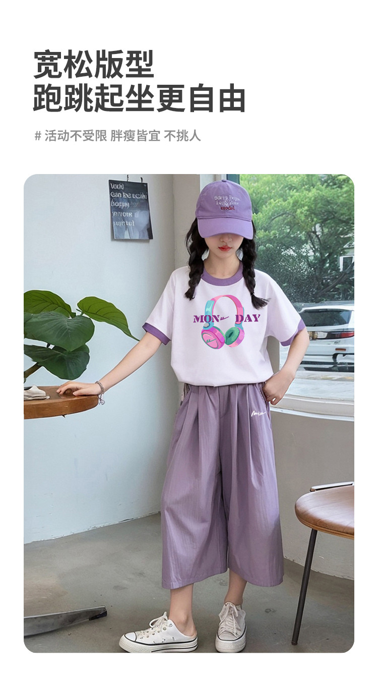 商品名称:童装女童时尚套装24夏款韩范中大童儿童短袖长裤薄款两件套潮 035603