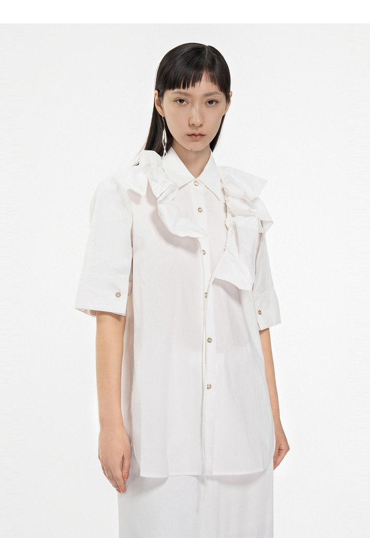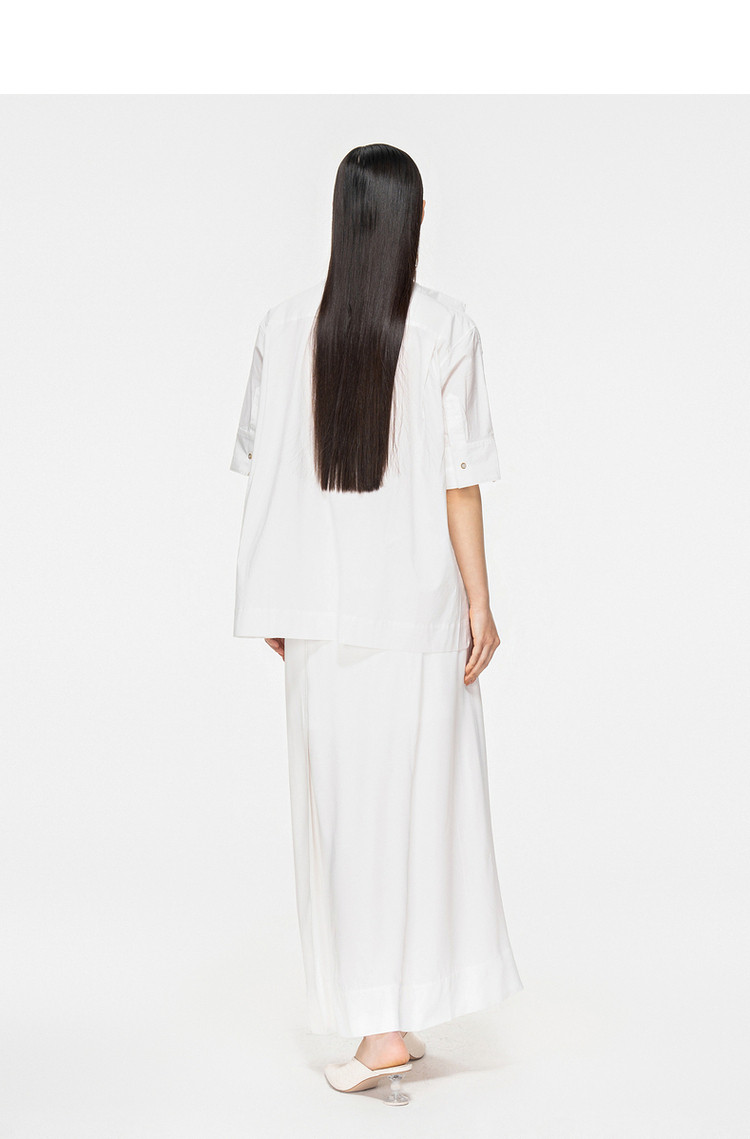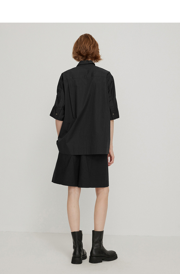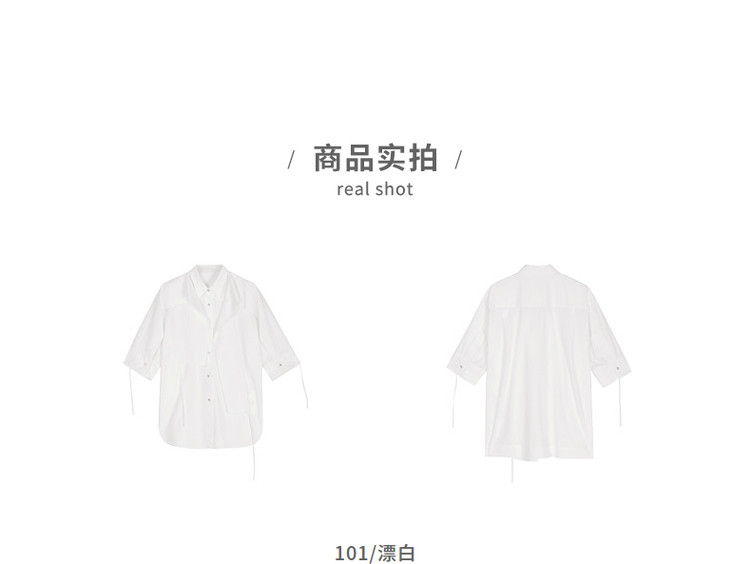 夏衬衣翻领宽松纯色休闲A型上衣女 225483