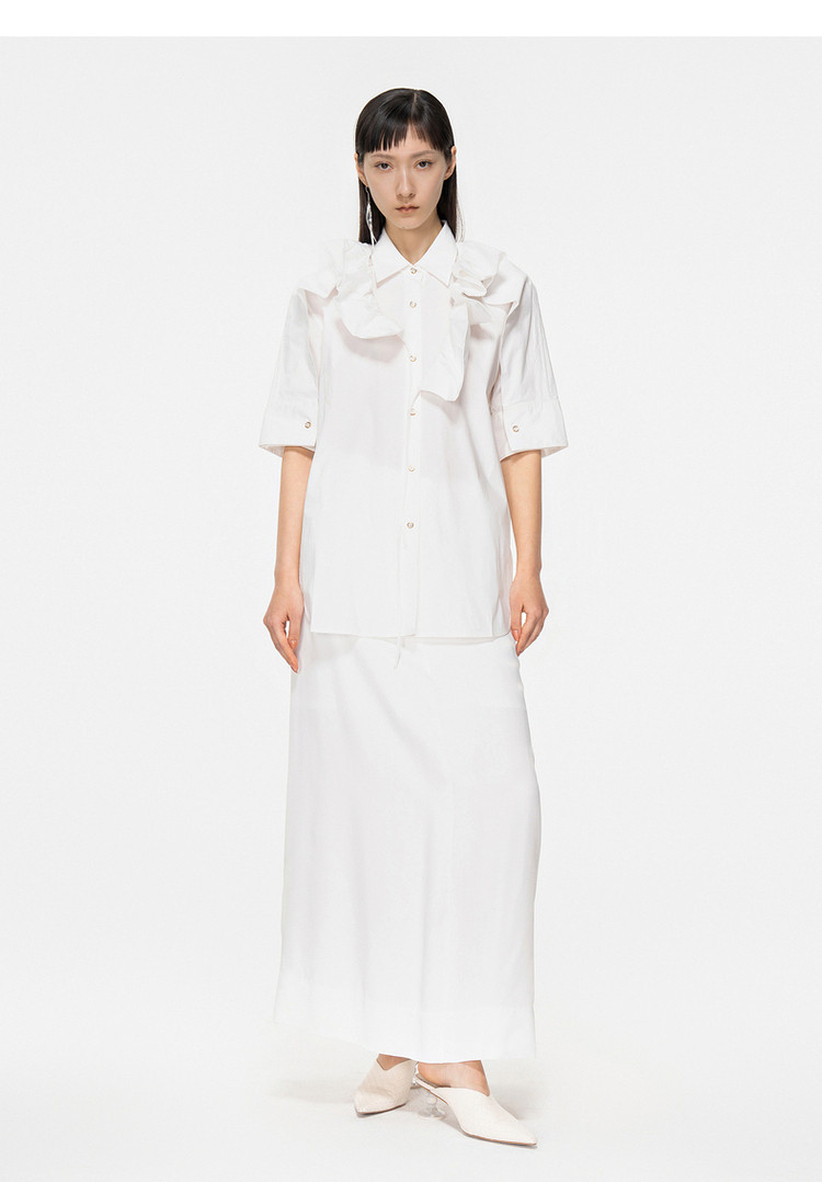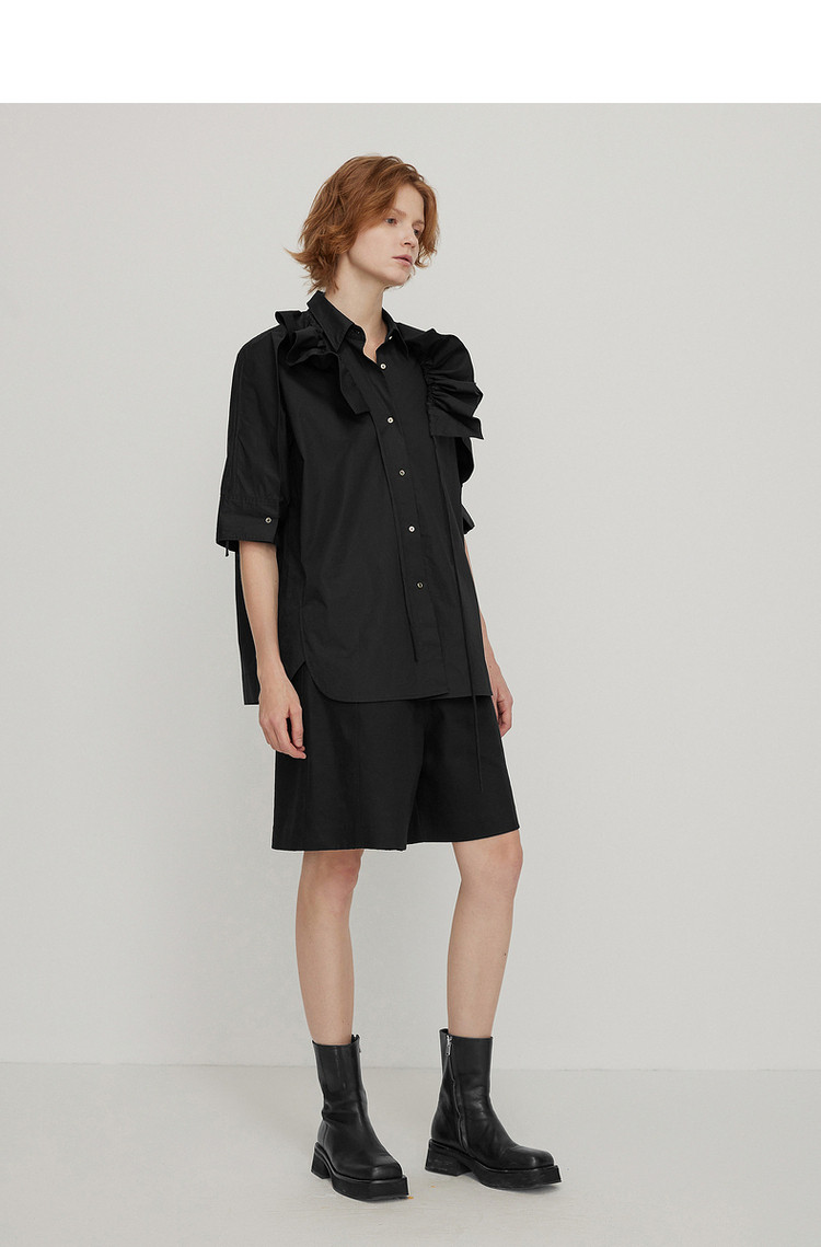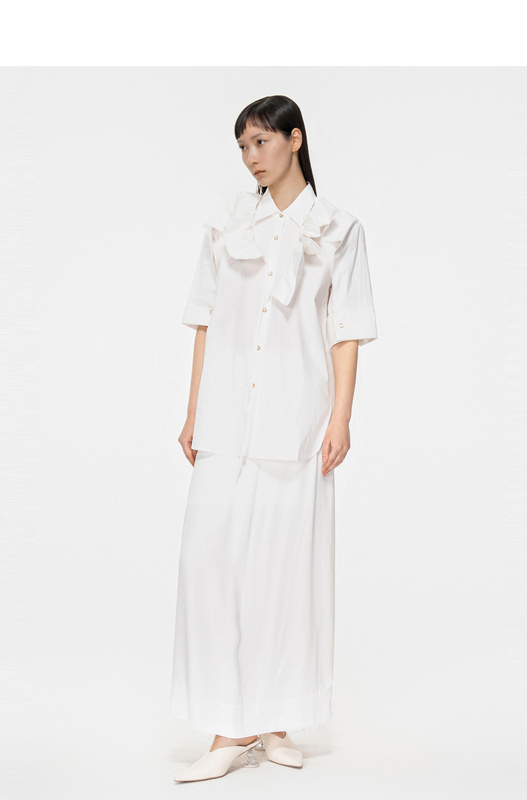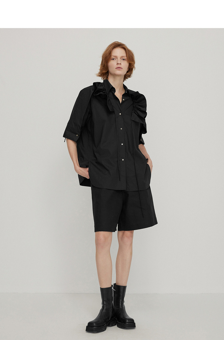 夏衬衣翻领宽松纯色休闲A型上衣女 225483