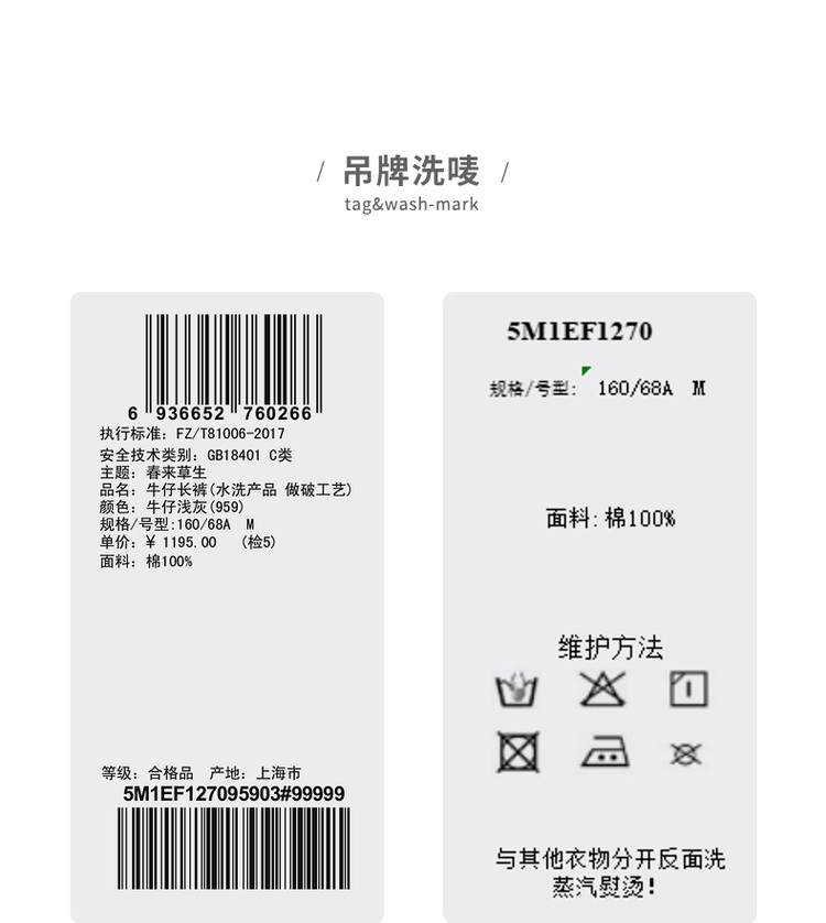 商品名称:春牛仔裤棉质水洗锥形裤装女 487563