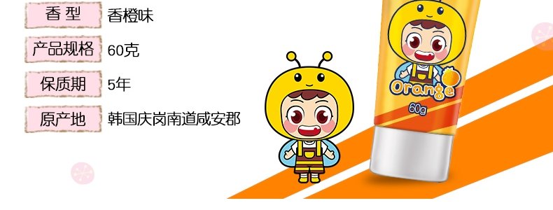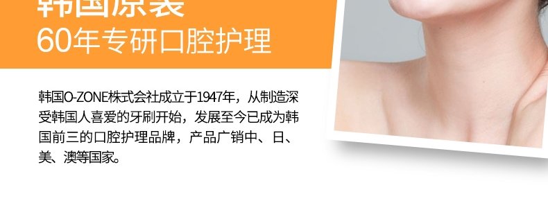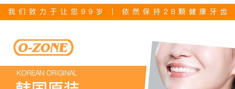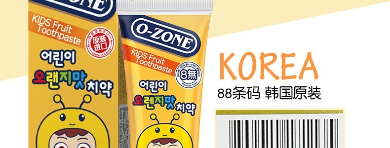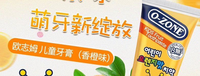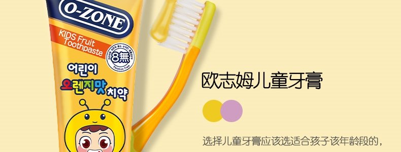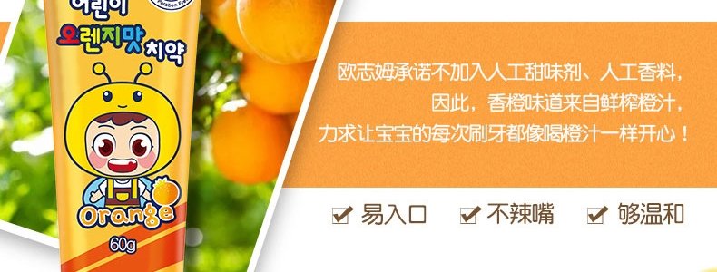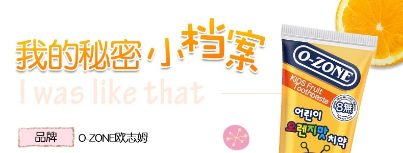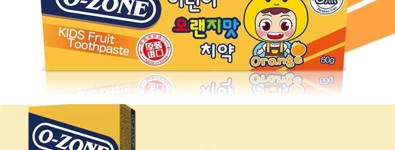 商品名称:韩国 欧志姆(O-ZONE)儿童牙膏(香橙味) 60g