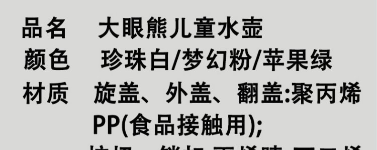商品名称:优美家 大眼熊儿童水壶 780ml 樱花粉