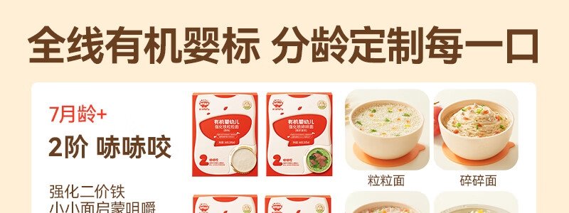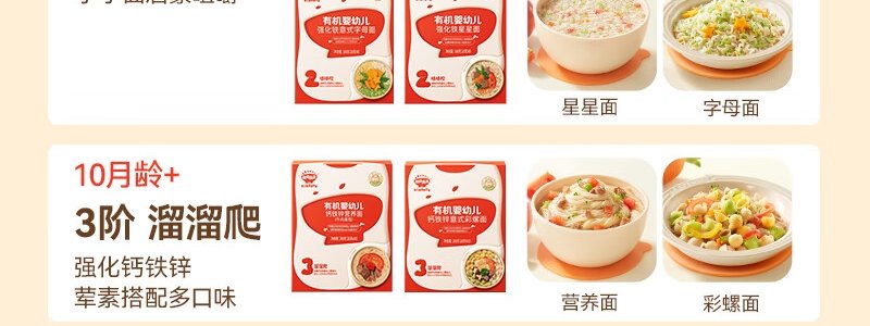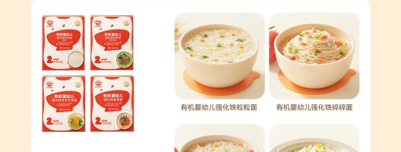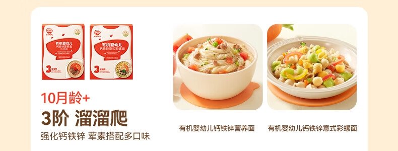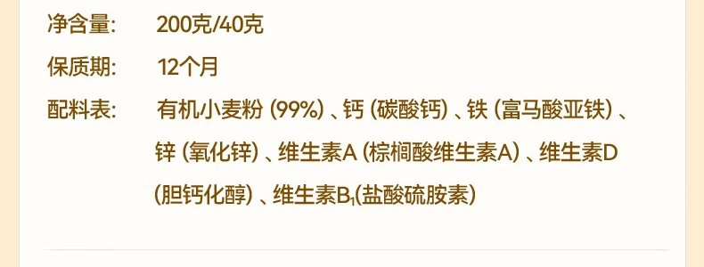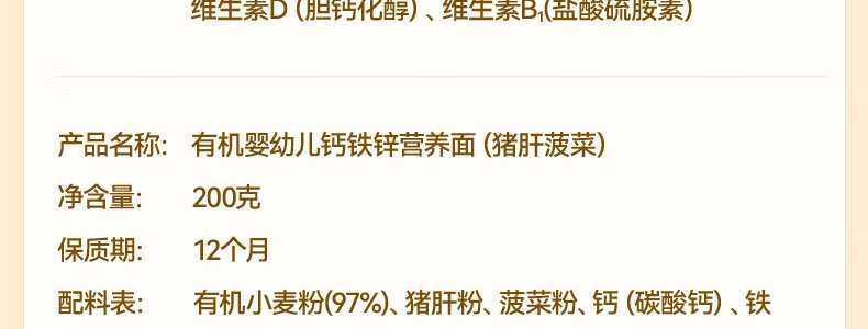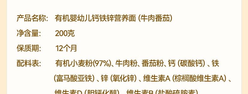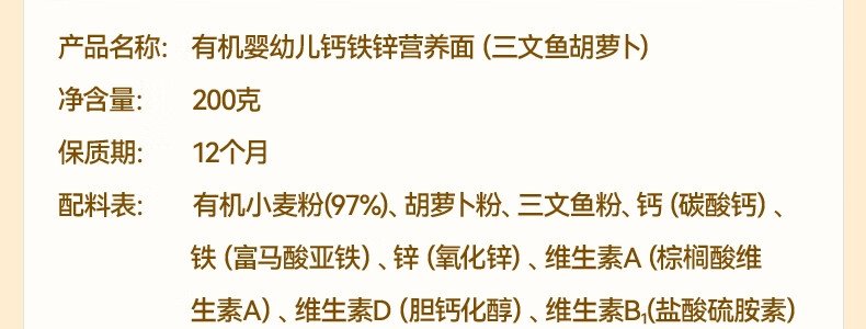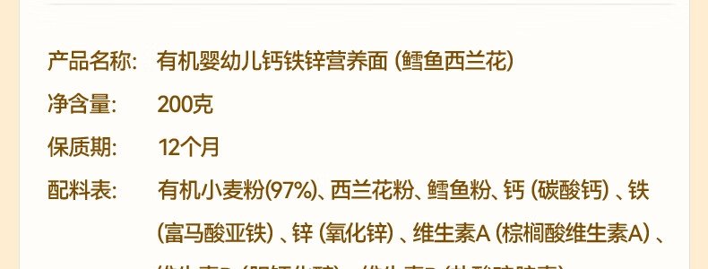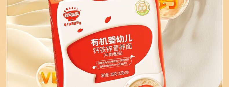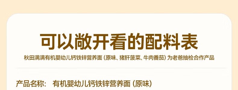 商品名称:秋田满满 有机婴幼儿钙铁锌营养面 原味 200g(包装随机)