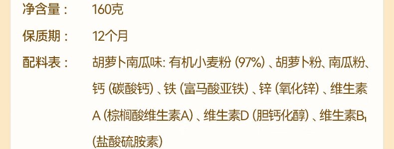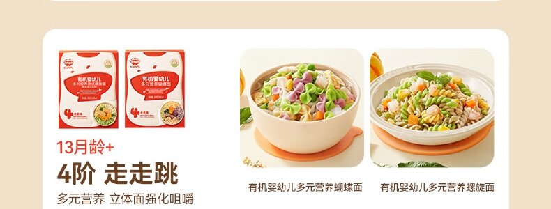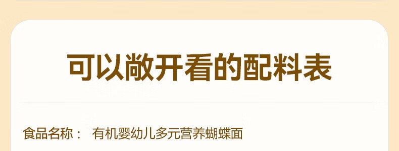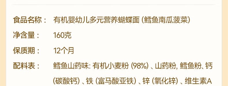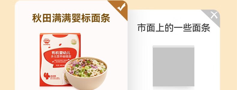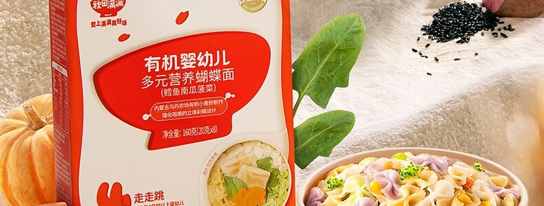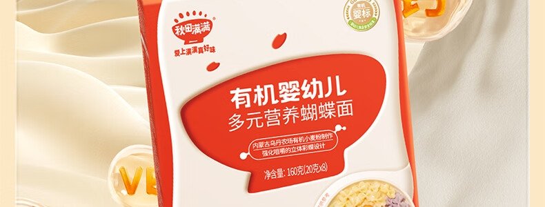 商品名称:秋田满满 有机婴幼儿多元营养蝴蝶面 160g(包装随机)