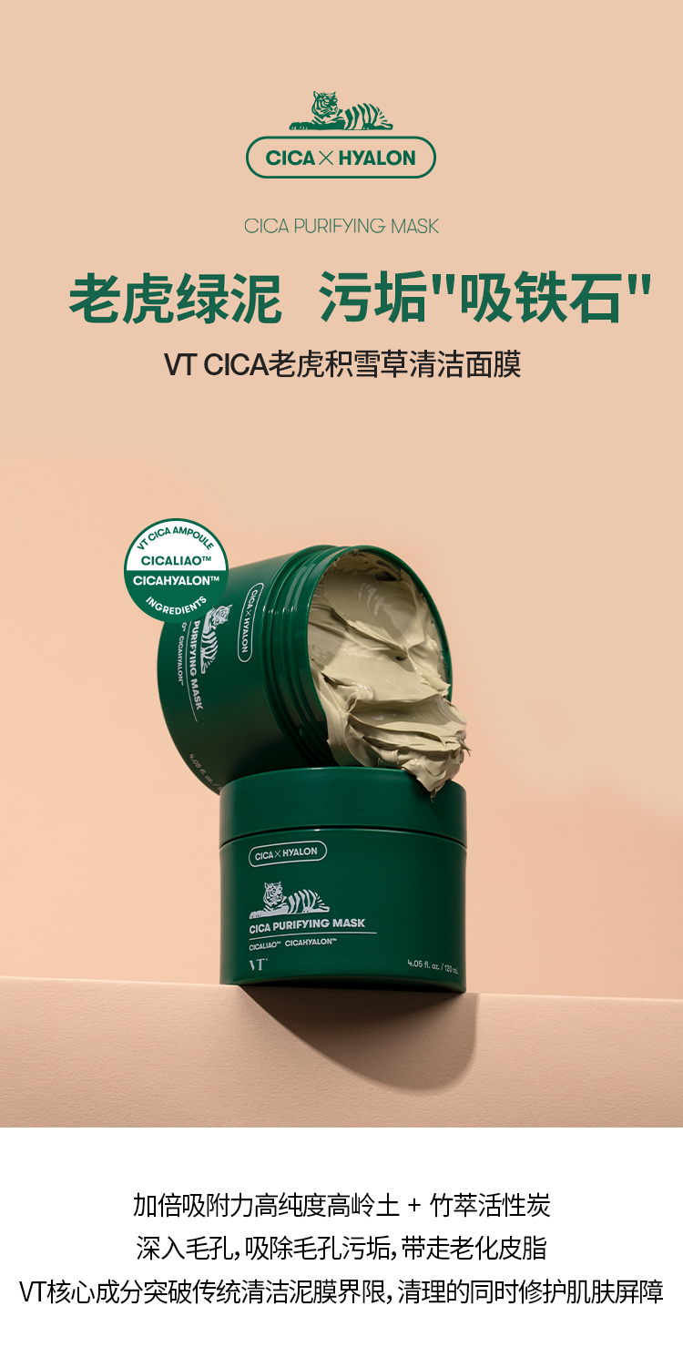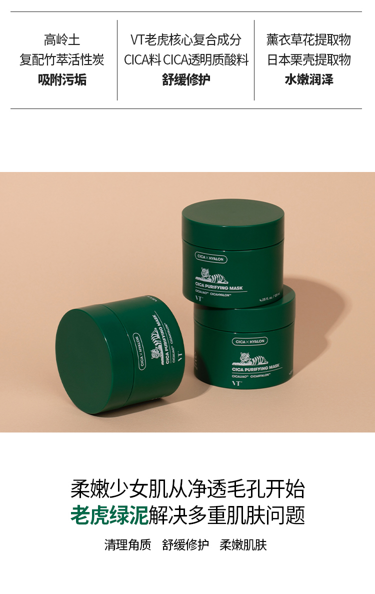 商品名称:vt 老虎清洁面膜泥膜 120ml 涂抹式 净透毛孔 补水保湿舒缓