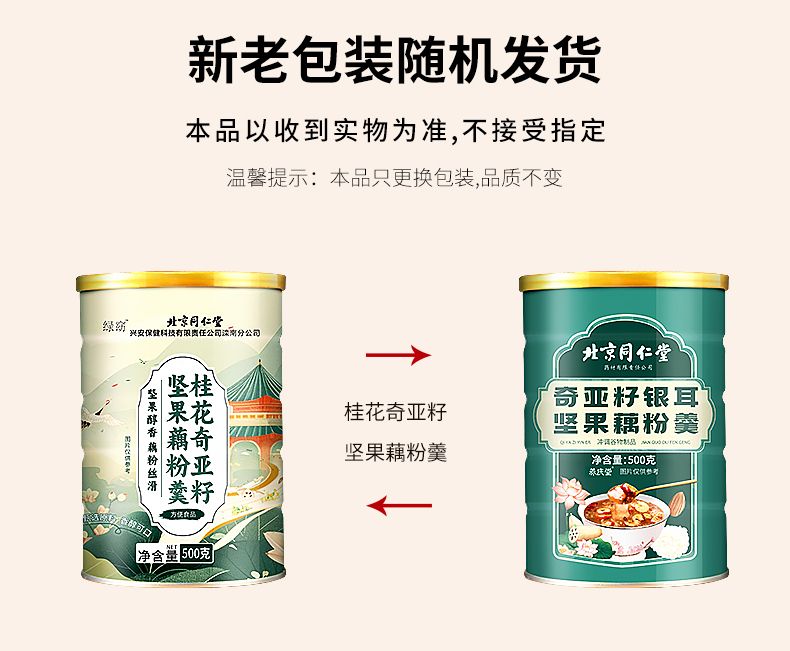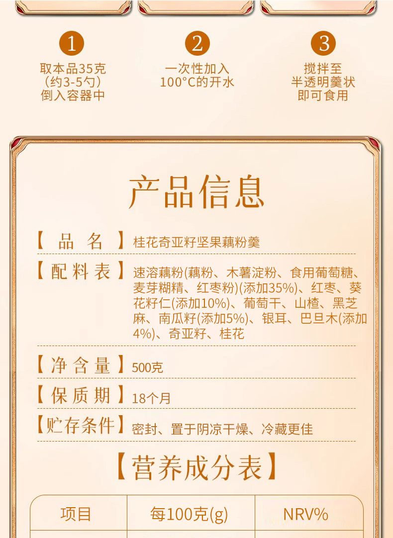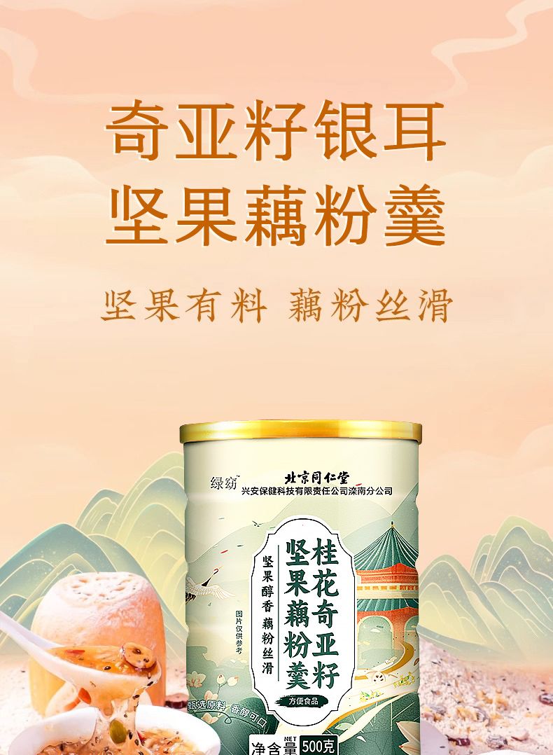 商品名称:2罐北京同仁堂桂花藕粉奇亚籽坚果藕粉羹代餐营养补充罐装500g0添加0色素