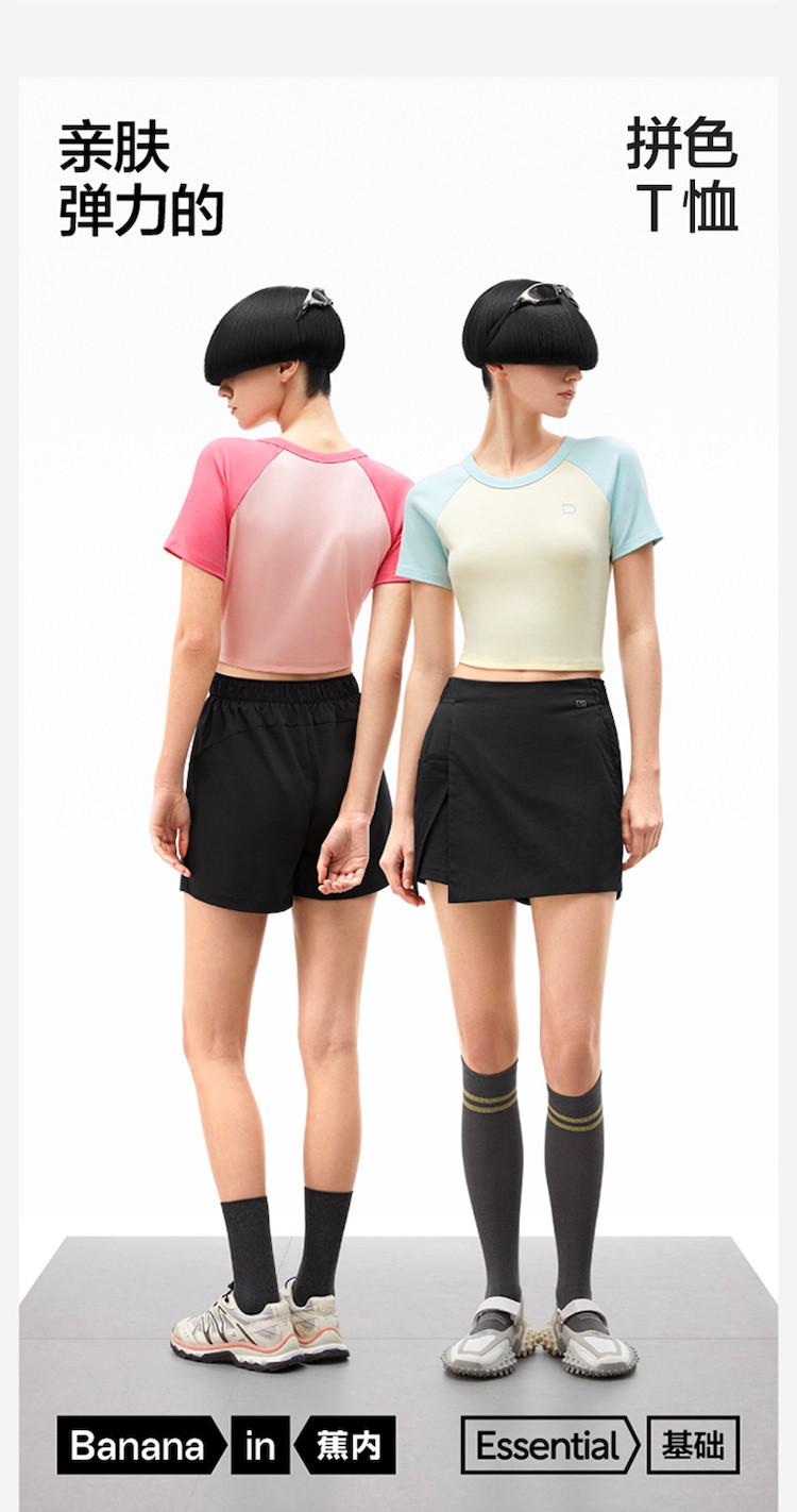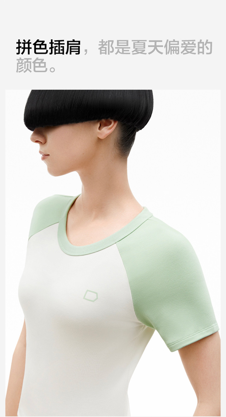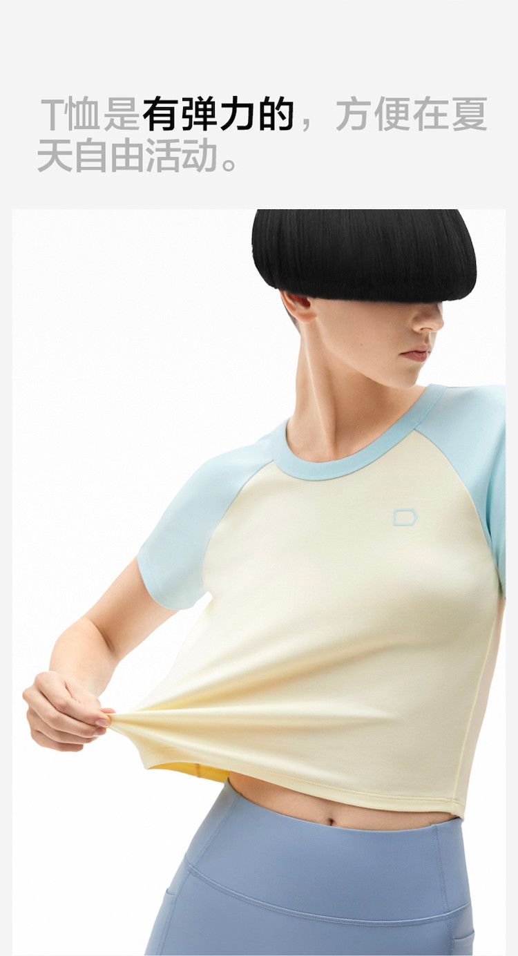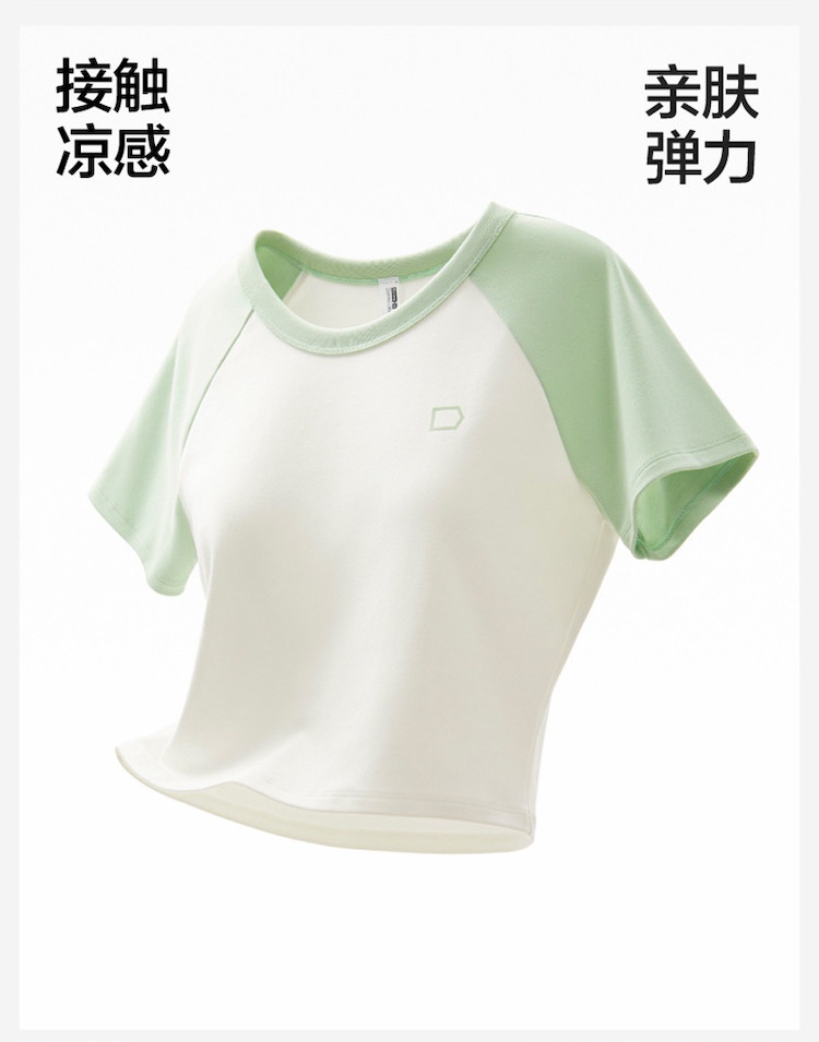 【甜酷风】301Go女士插肩撞色短款T恤莫代尔棉亲肤显腿长 489861