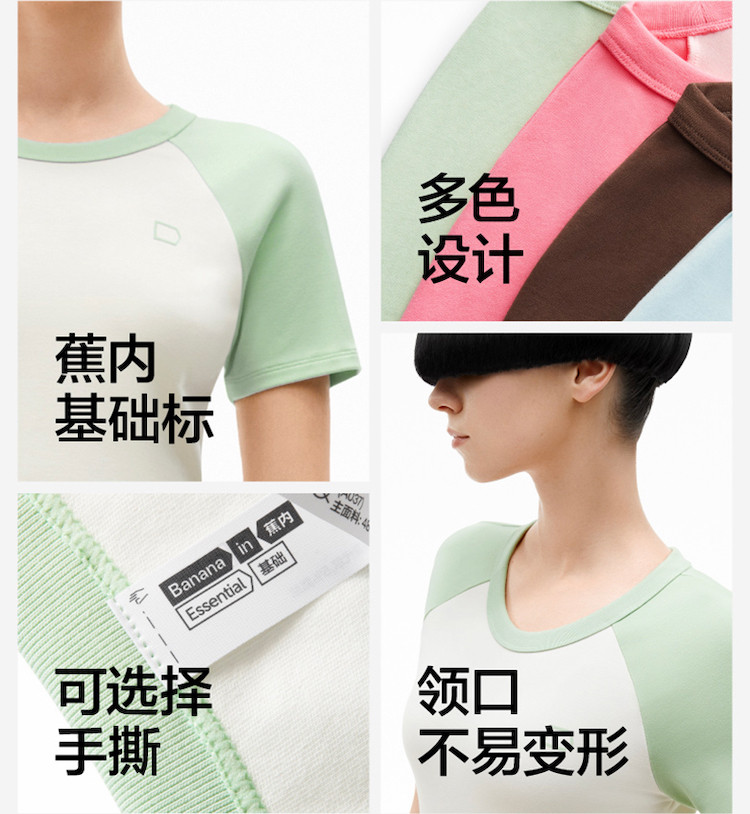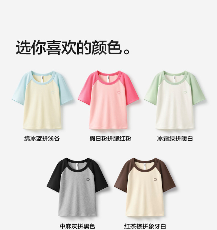 商品名称:【甜酷风】301Go女士插肩撞色短款T恤莫代尔棉亲肤显腿长 489861