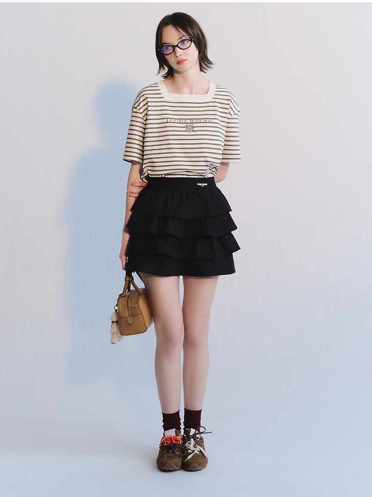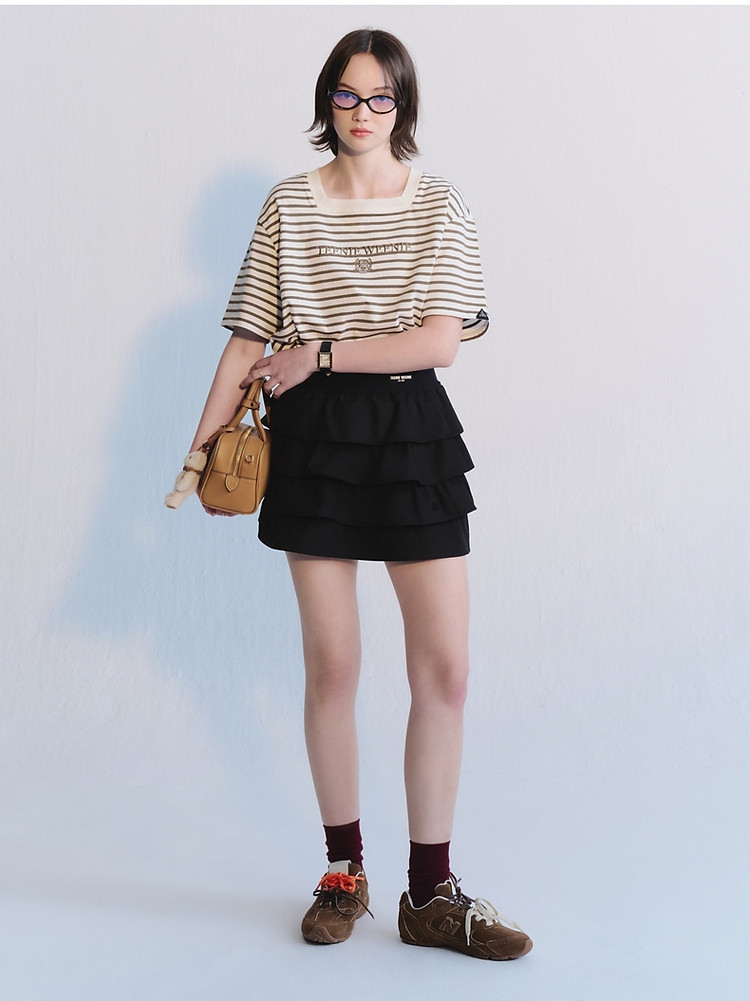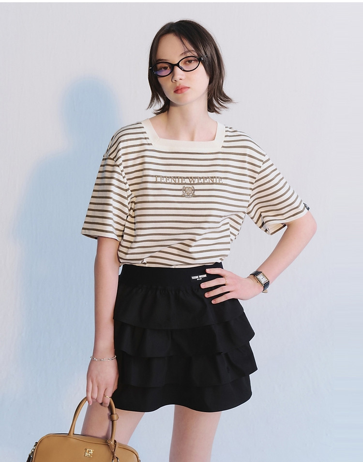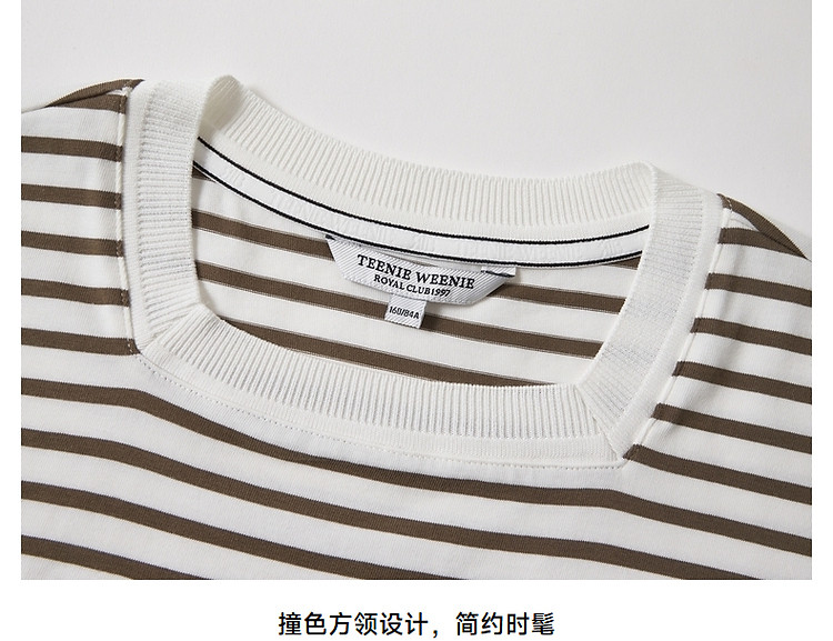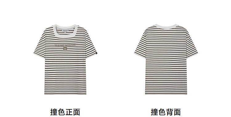 小熊夏季款方领条纹短袖T恤学院风时髦宽松女士 187265