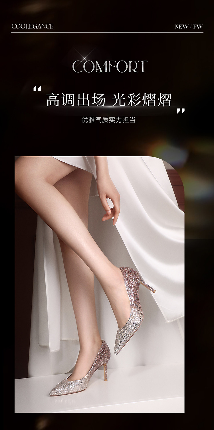 吉娜明星同款百丽女鞋细跟婚鞋高跟鞋女鞋子上班穿单鞋 864218