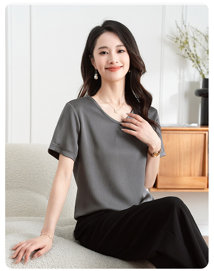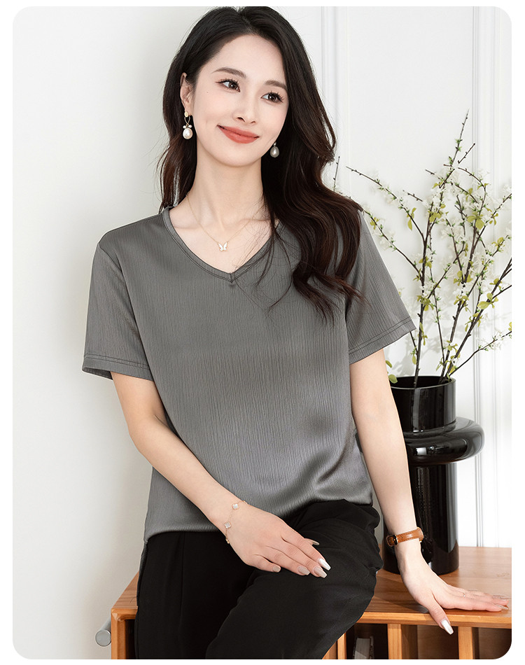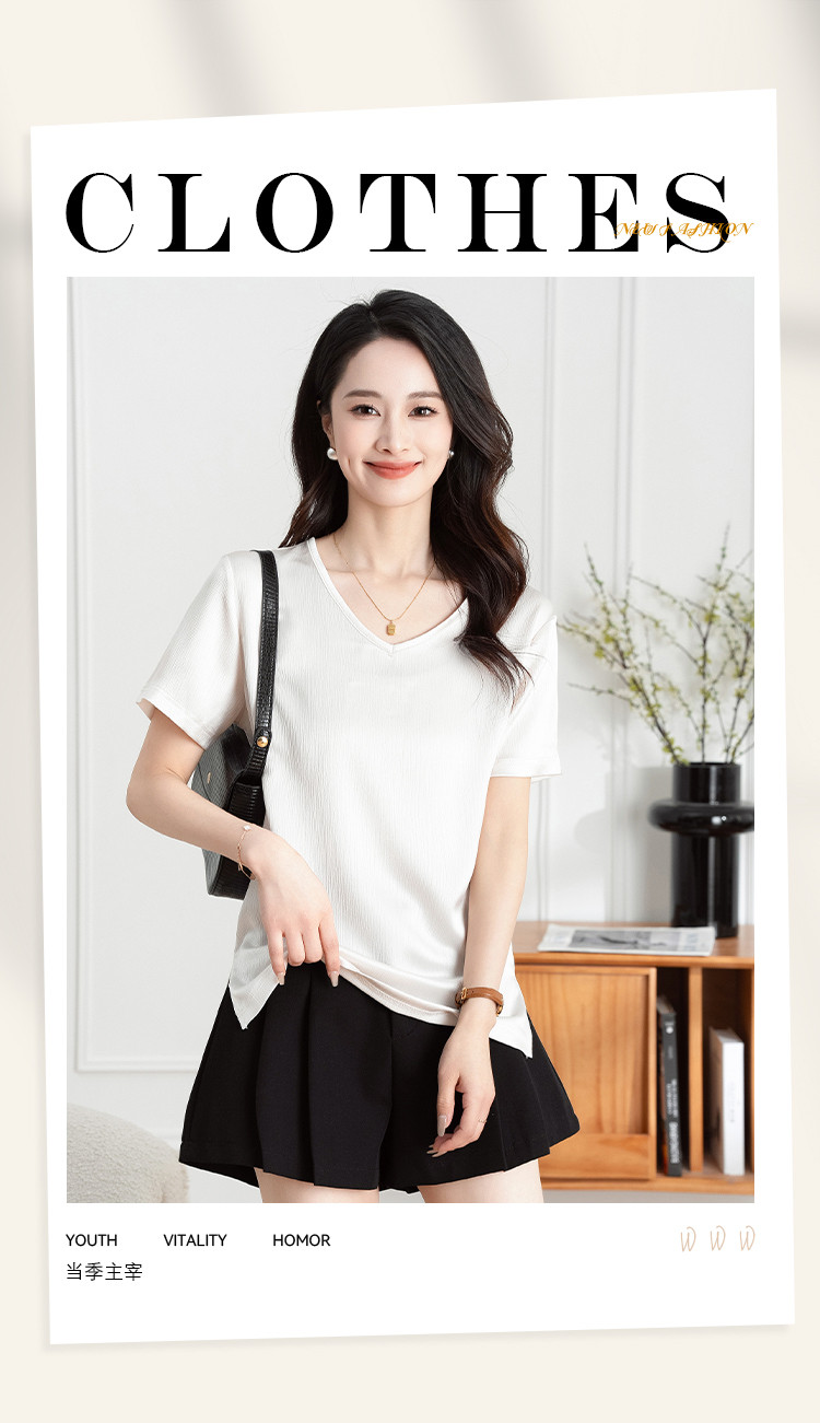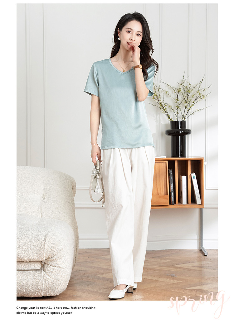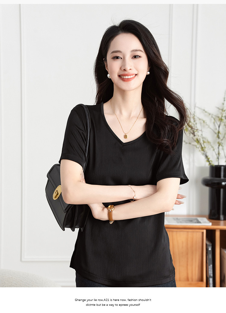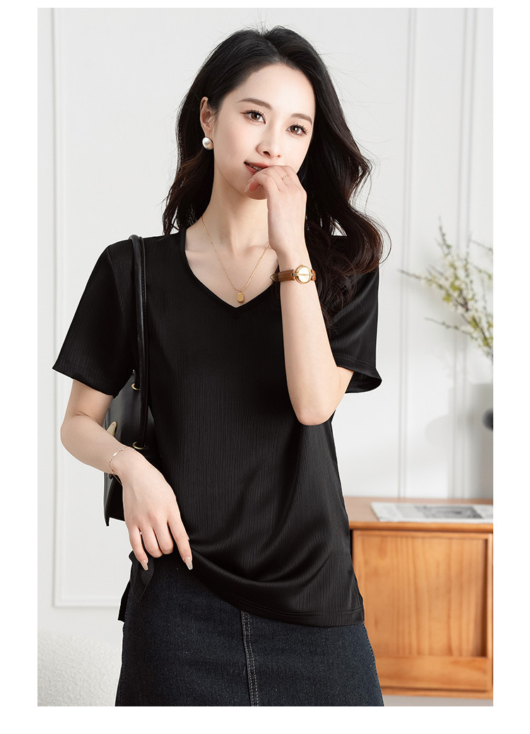 商品名称:时尚两边开叉夏季V领短袖T恤女休闲百搭舒适透气纯色气质上衣女 283521