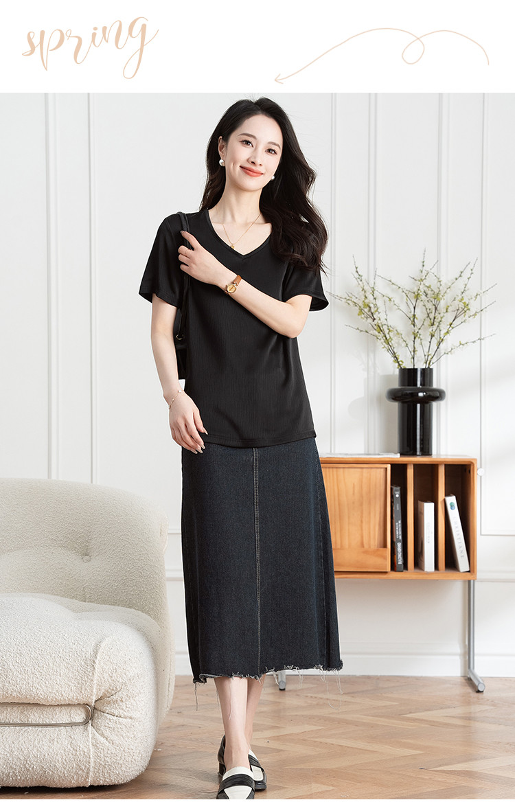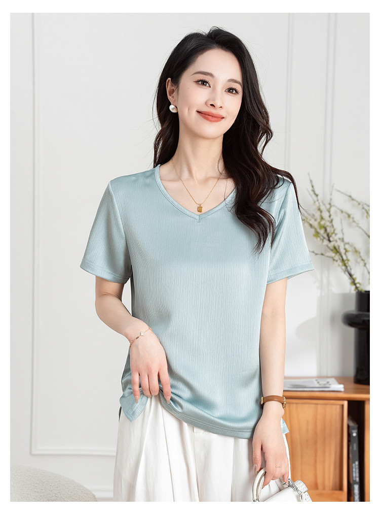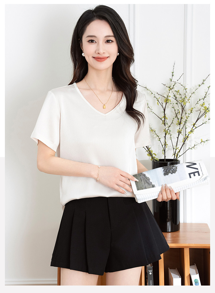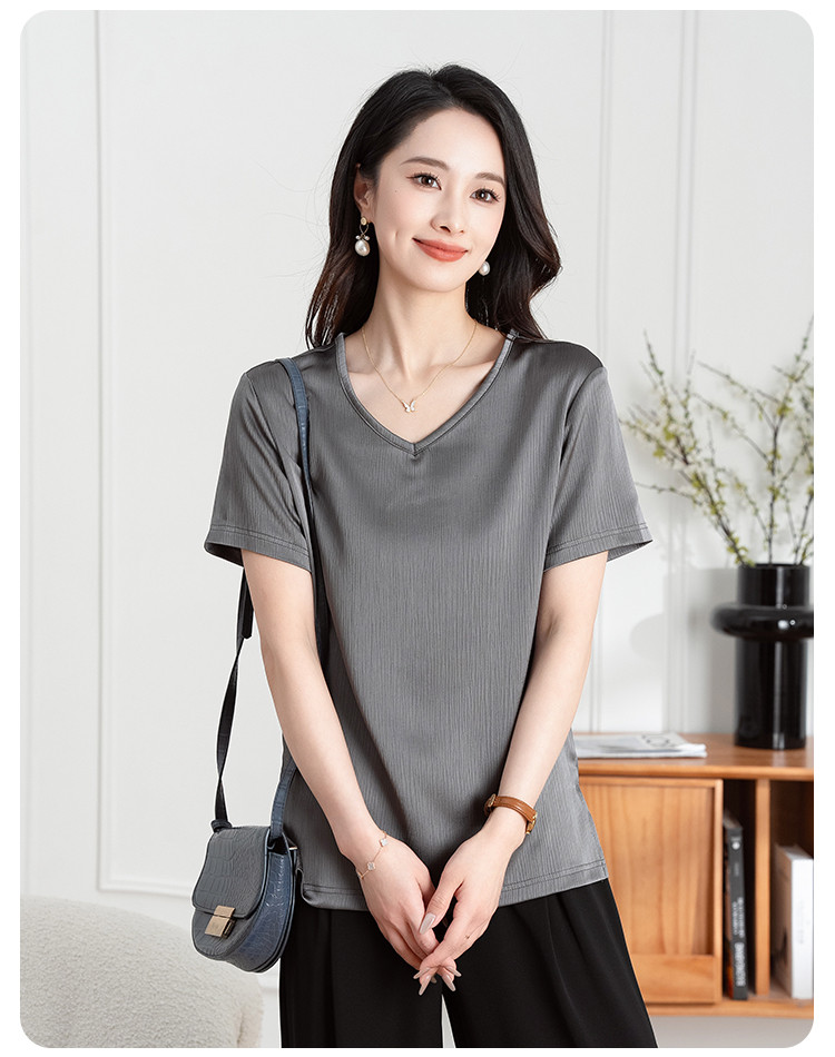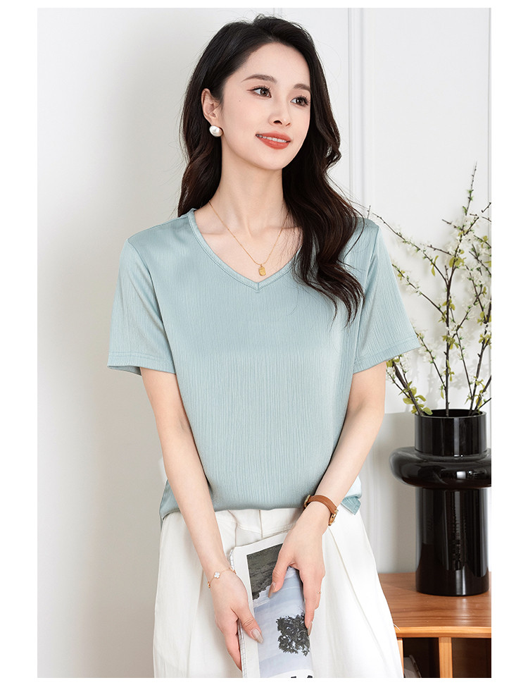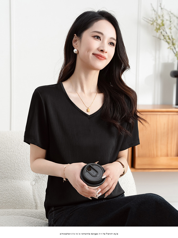 商品名称:时尚两边开叉夏季V领短袖T恤女休闲百搭舒适透气纯色气质上衣女 283521