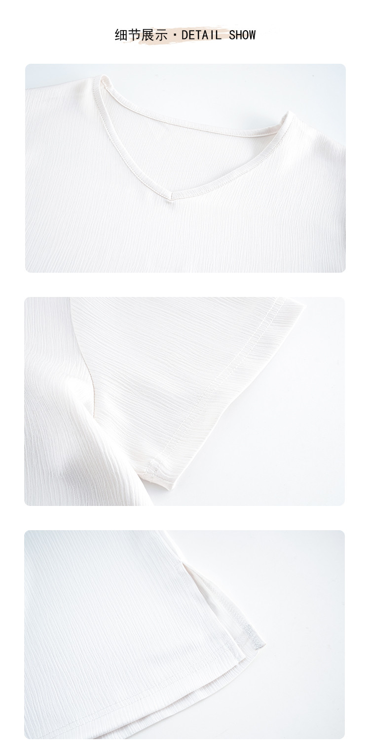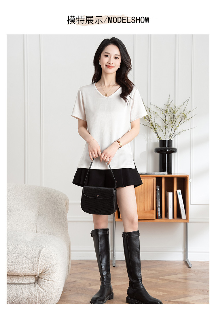 时尚两边开叉夏季V领短袖T恤女休闲百搭舒适透气纯色气质上衣女 283521