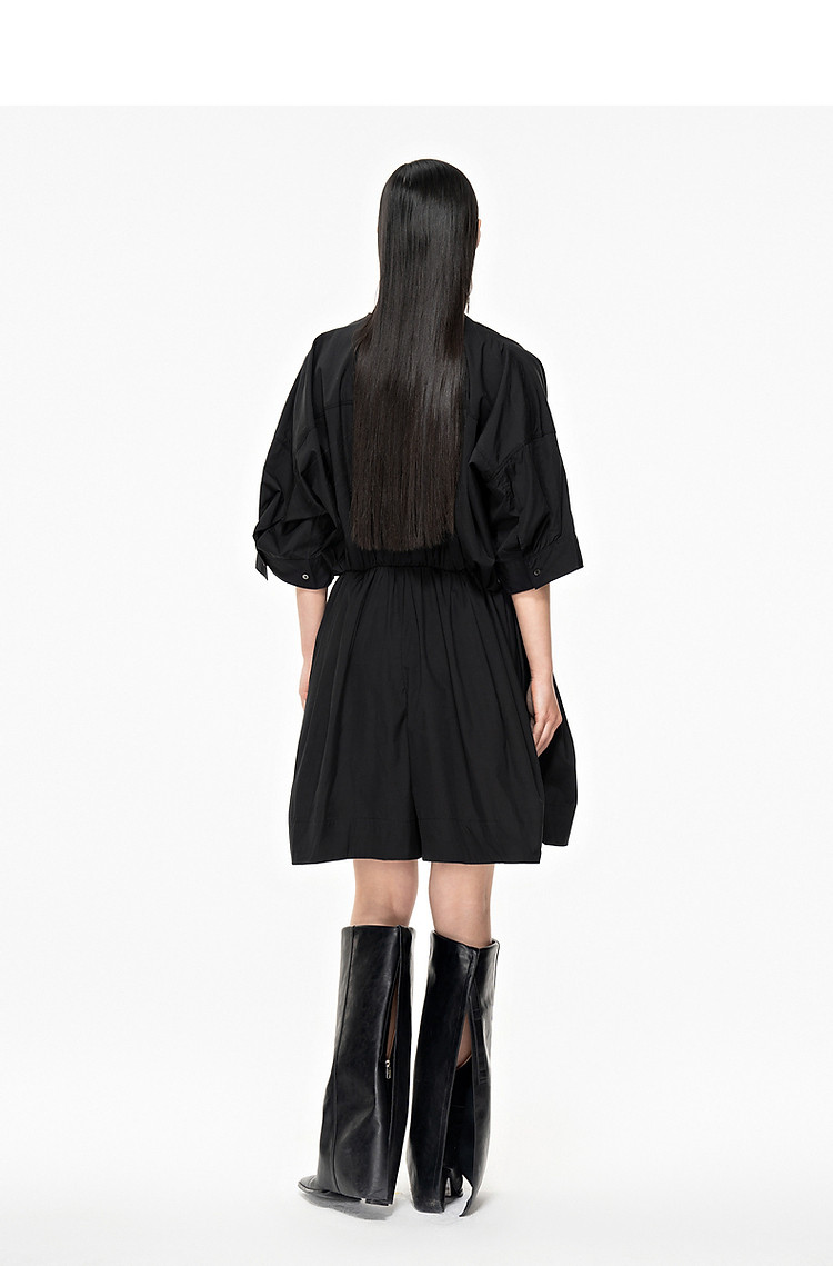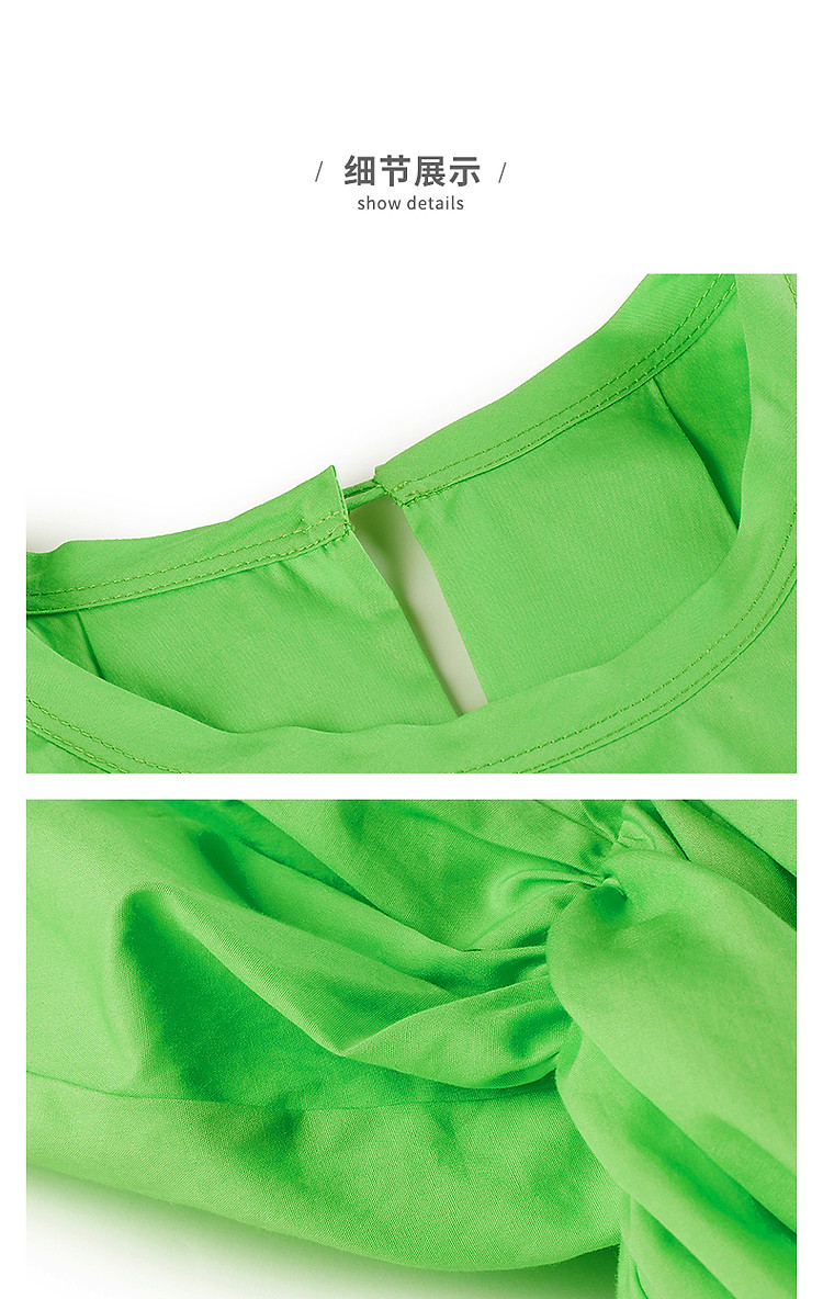 商品名称:夏连体衣女圆领后背大开叉腰部抽褶女 021003