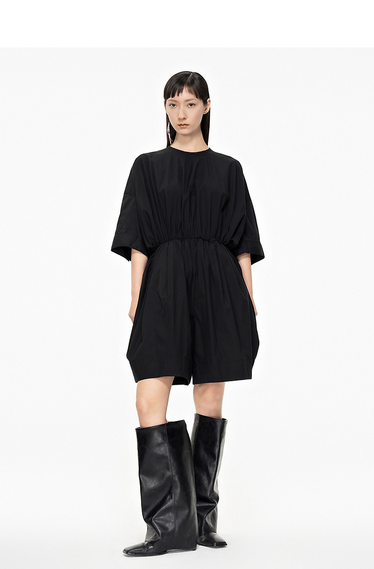 夏连体衣女圆领后背大开叉腰部抽褶女 021003