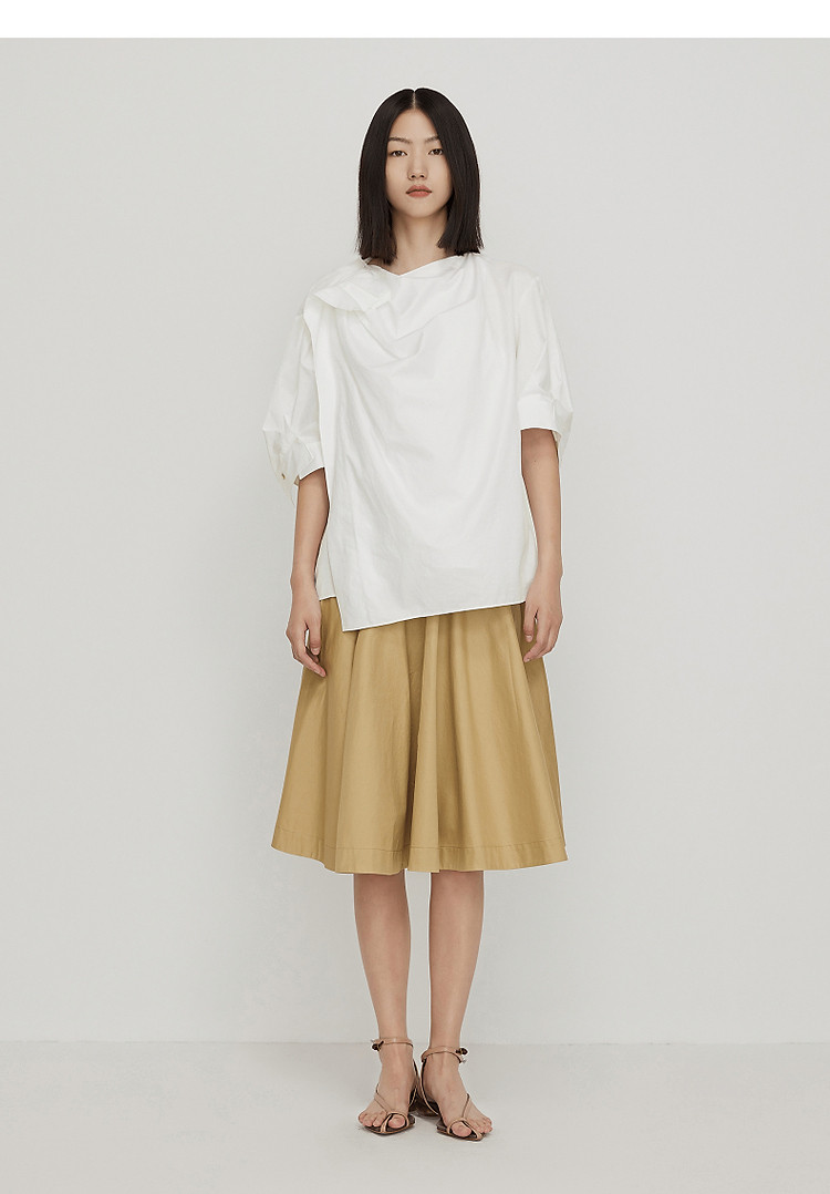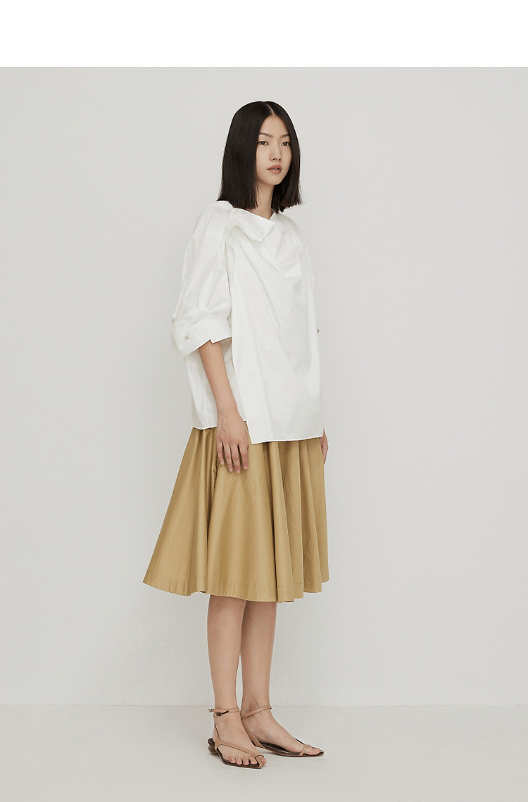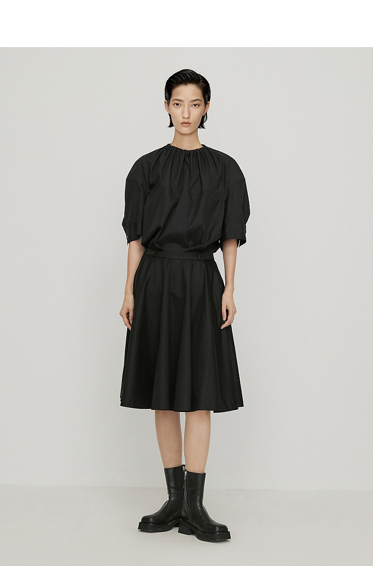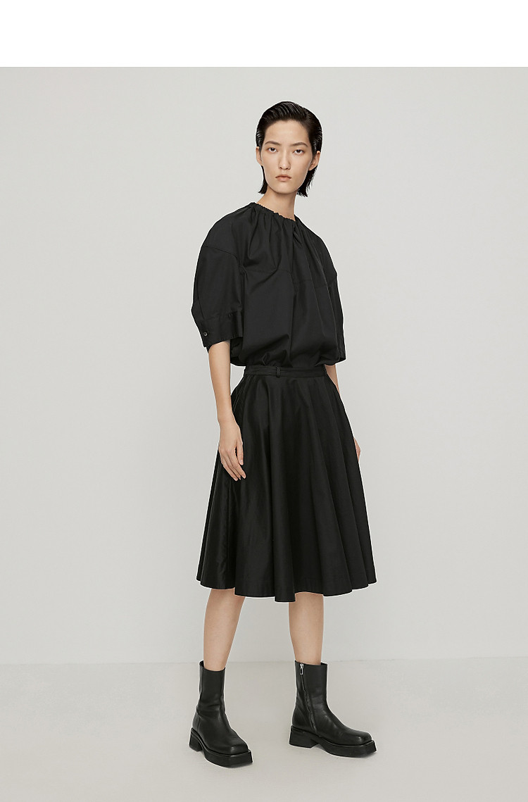 夏半身裙纯棉褶皱宽松A型腰裙女 606603