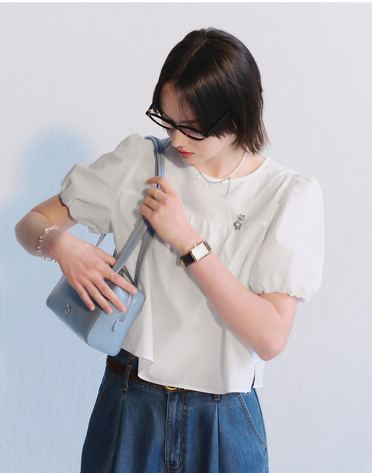 小熊夏季款泡泡纱短袖娃娃衫少女装感宽松衬衫 220033