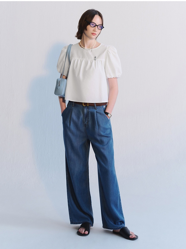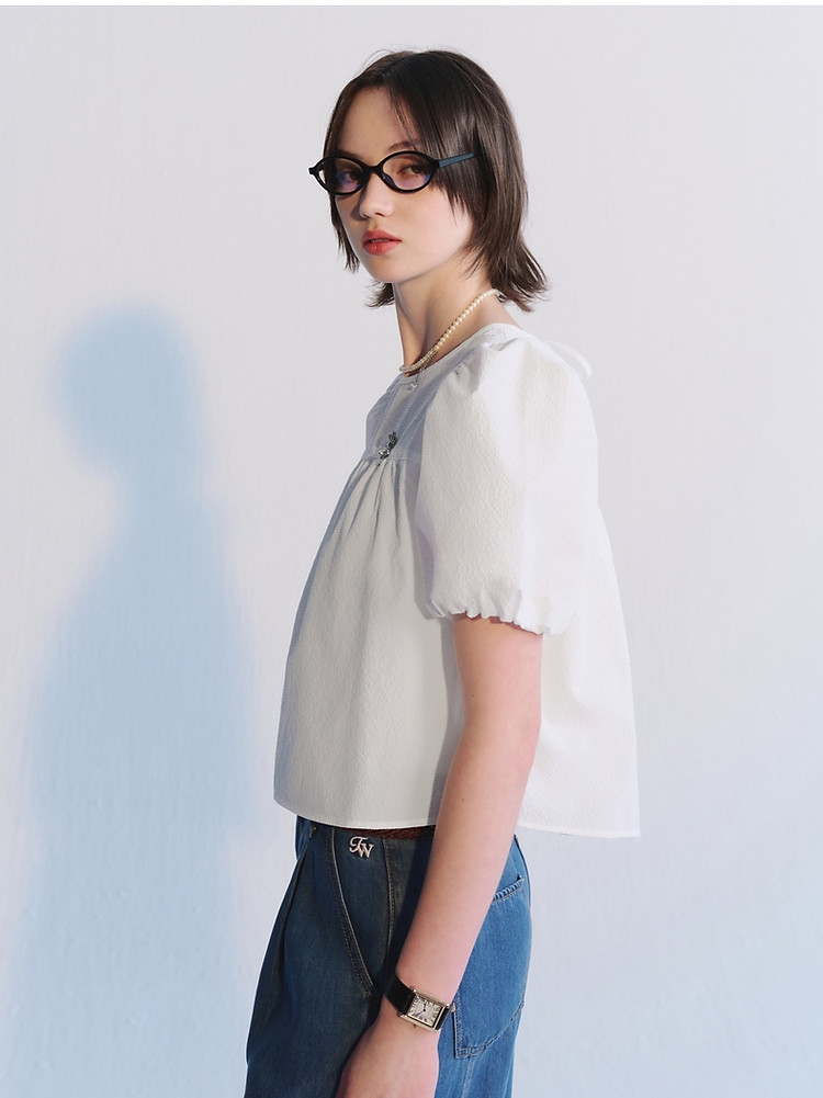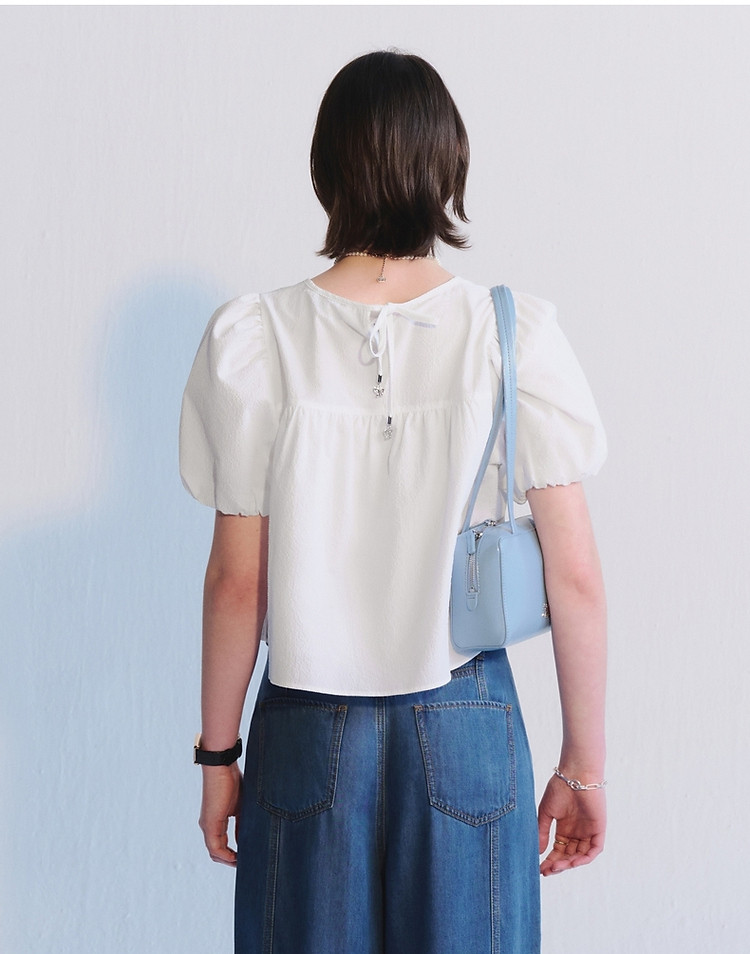 商品名称:小熊夏季款泡泡纱短袖娃娃衫少女装感宽松衬衫 220033