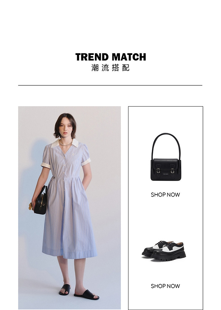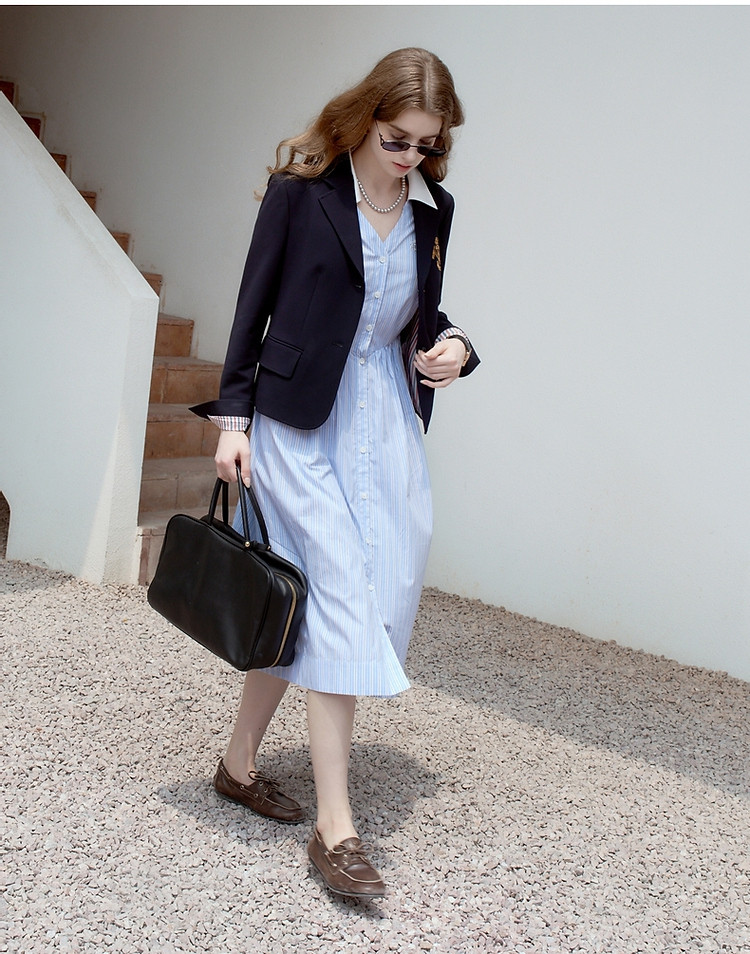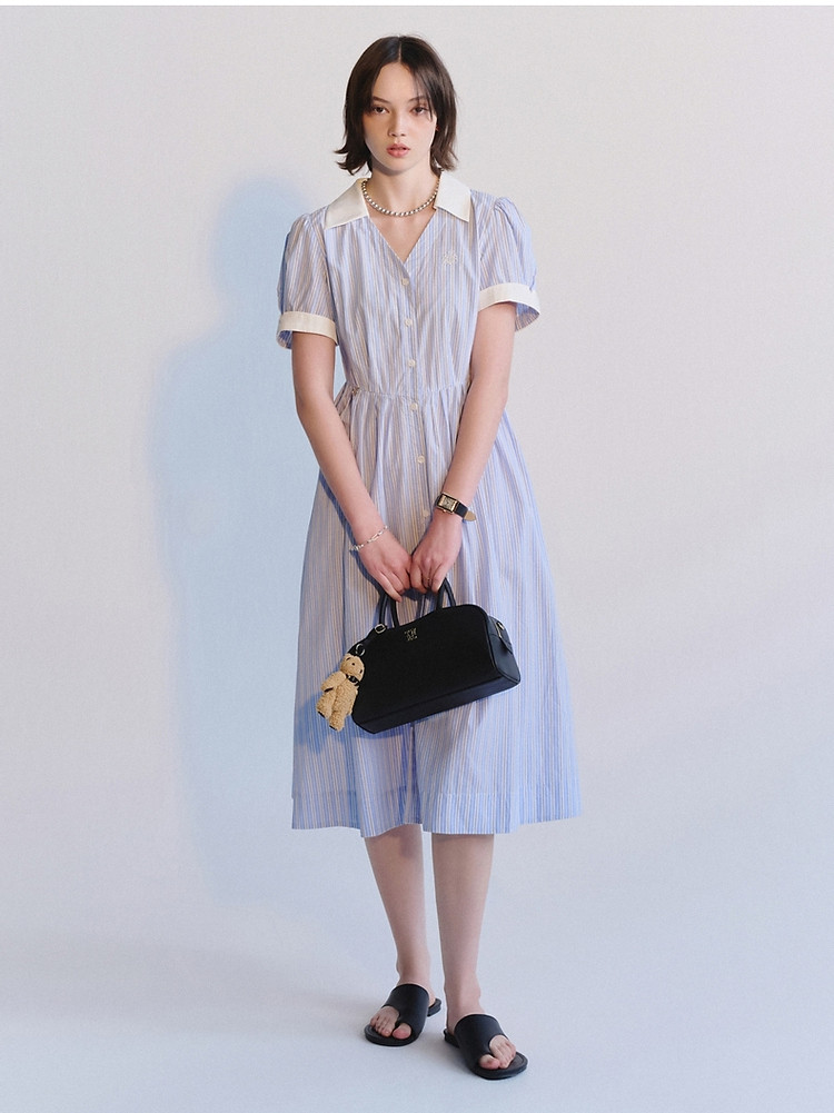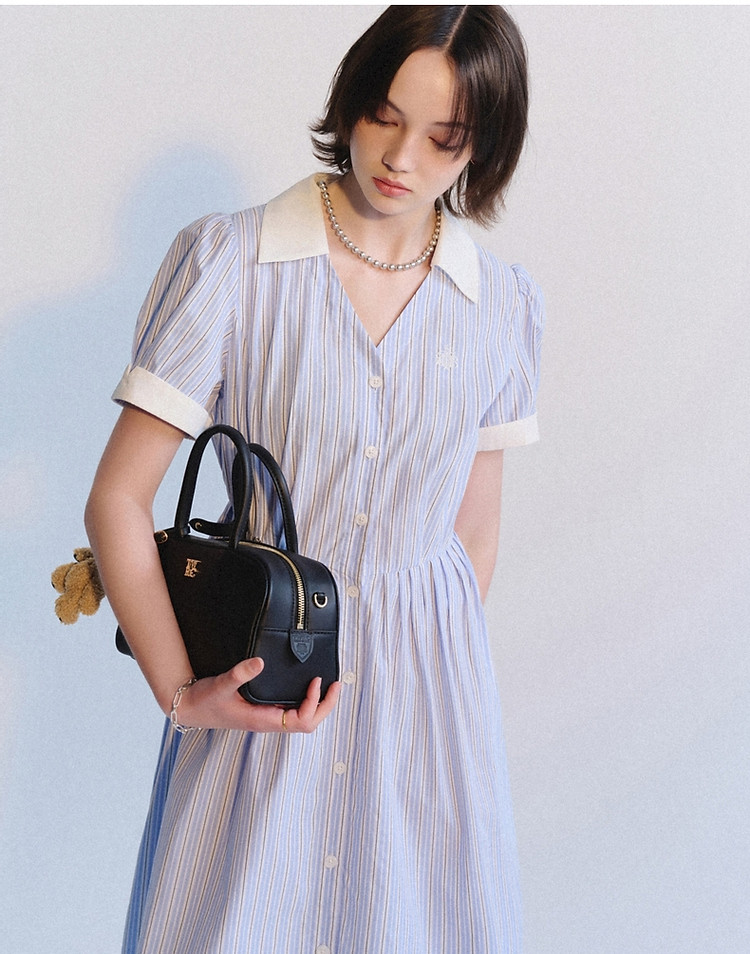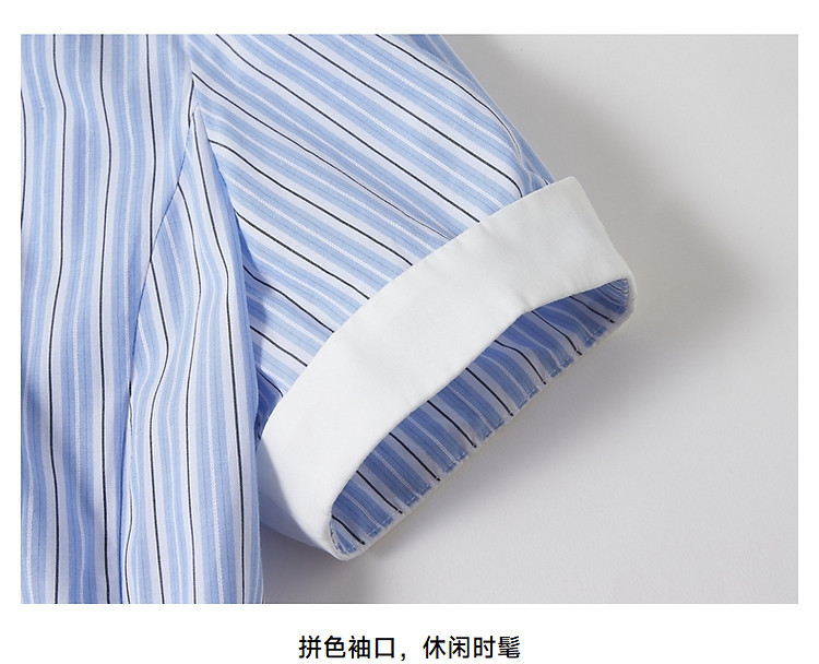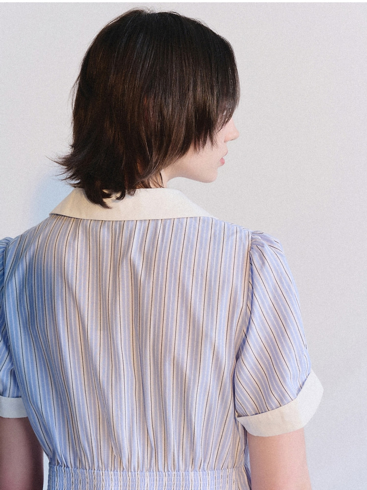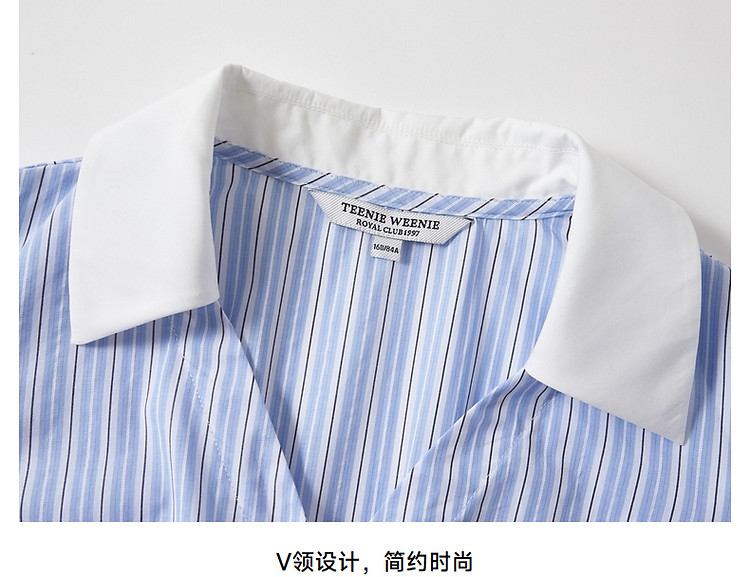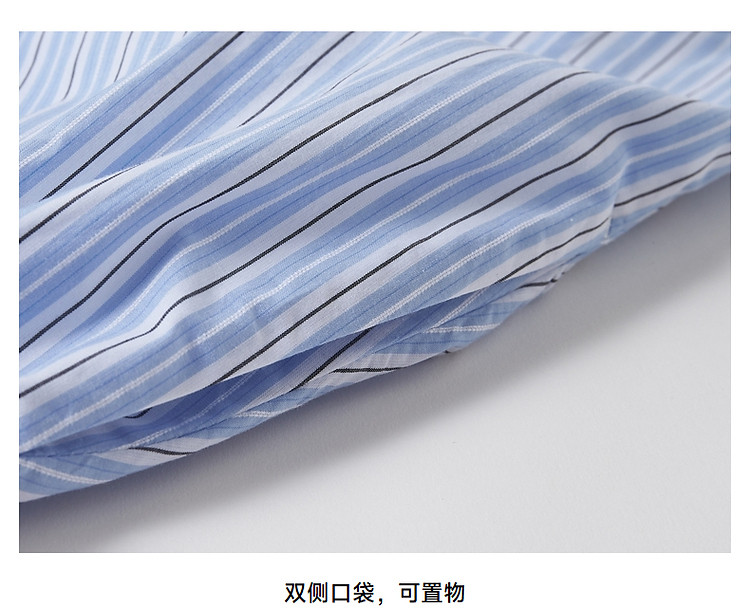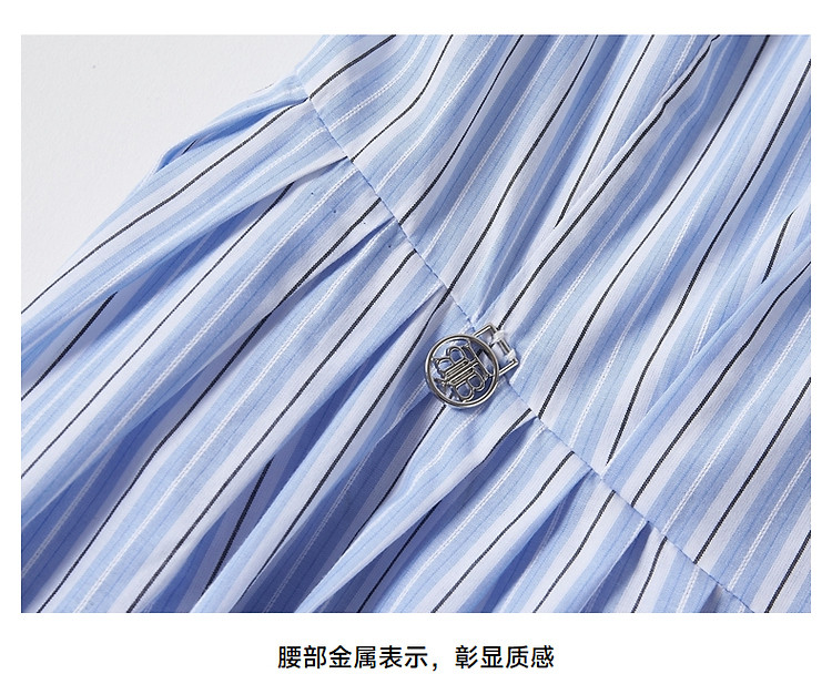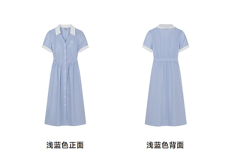 商品名称:连衣裙女夏季学院风少女V领条纹短袖衬衫领长裙女 345793