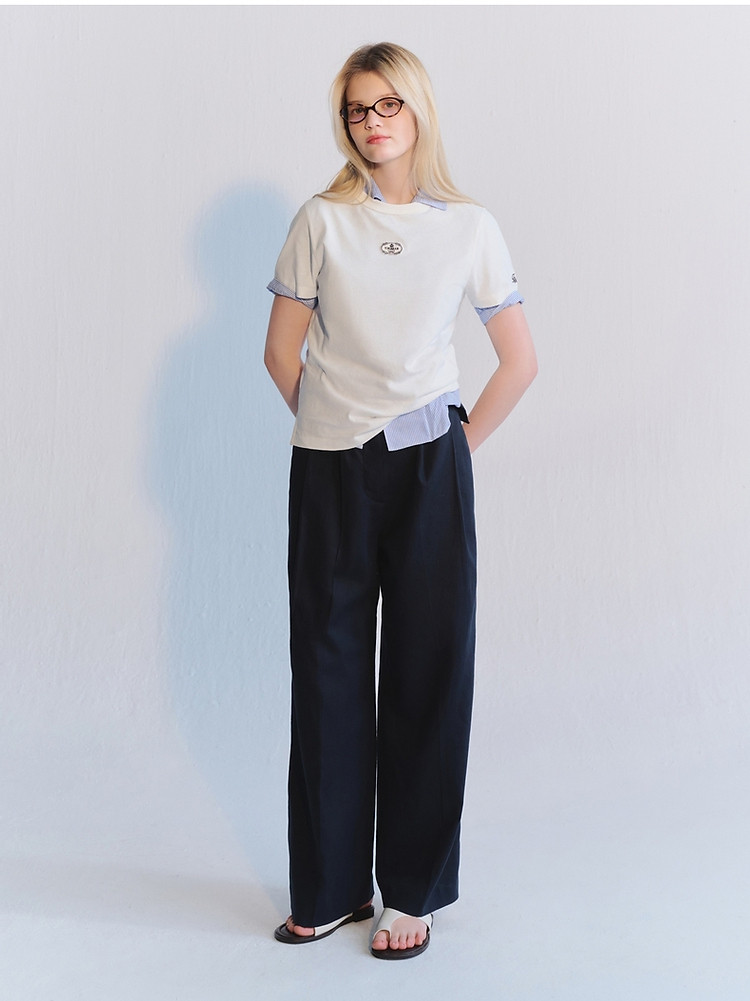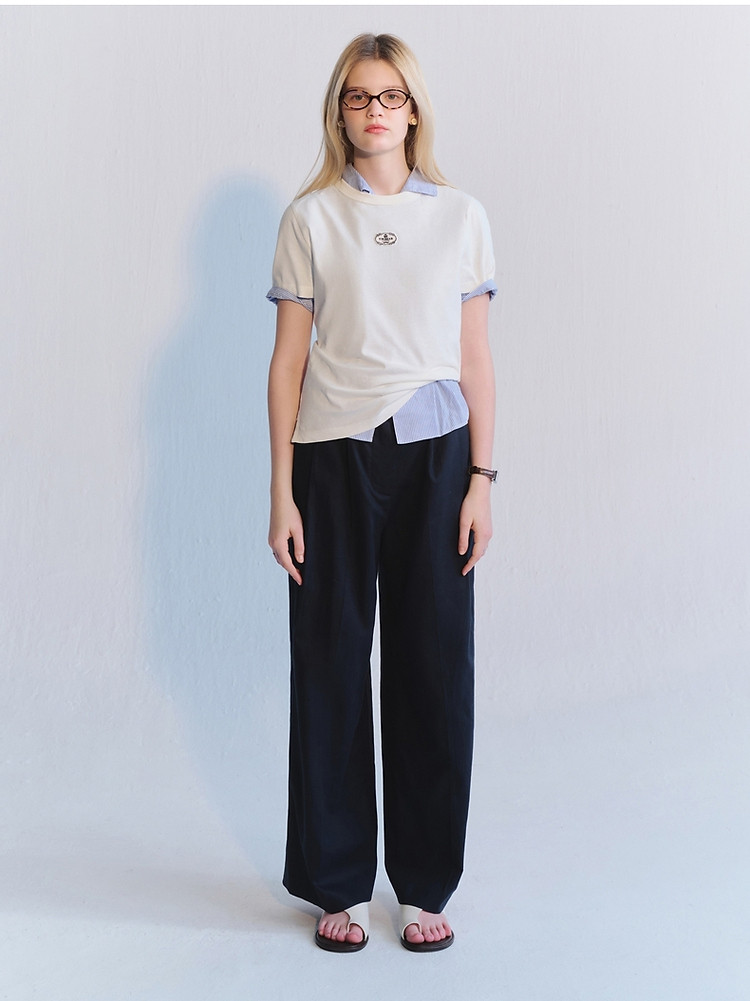【棉+亚麻】小熊夏季职场通勤简约圆领纯色白色T恤女 412865