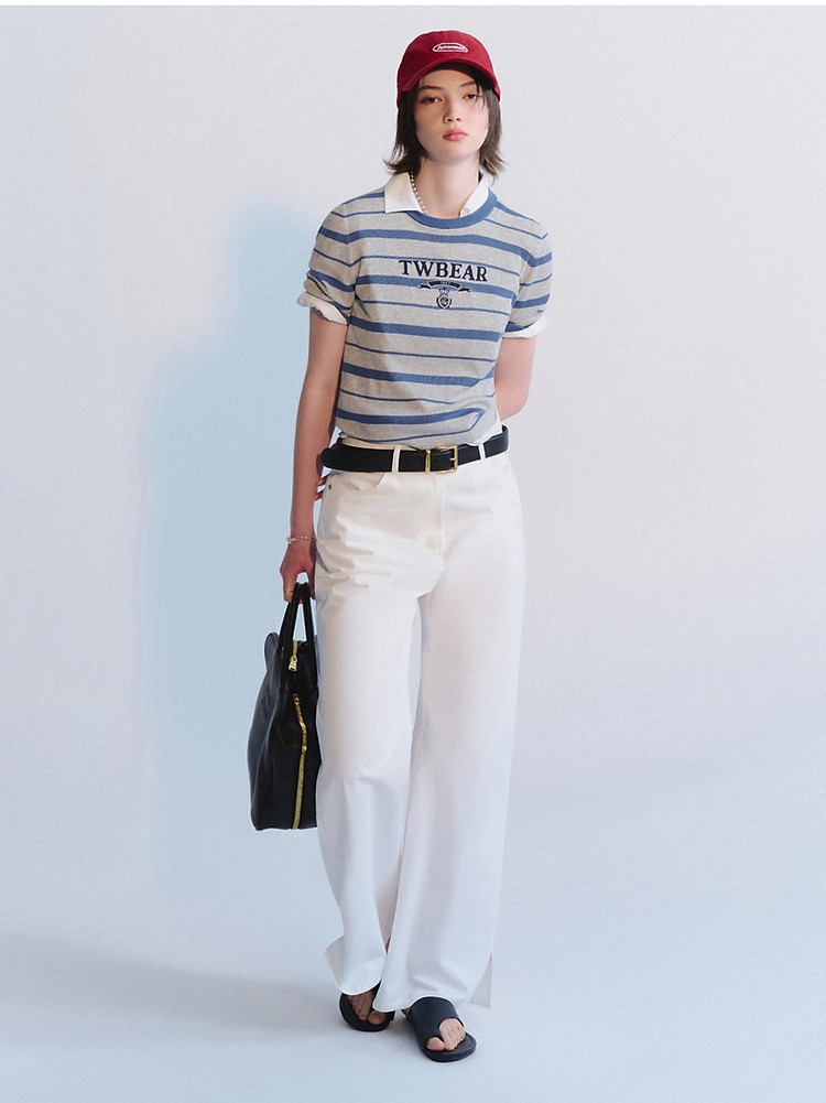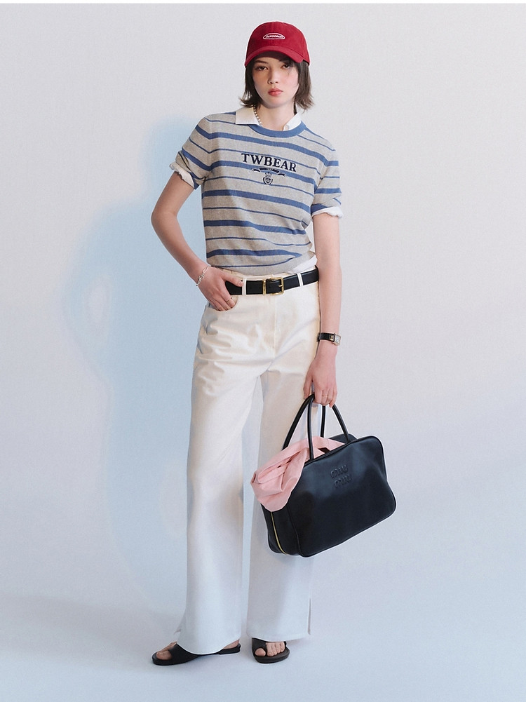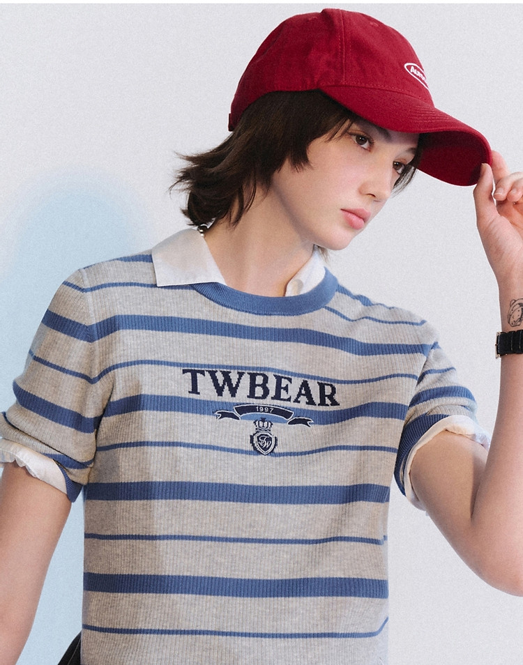 商品名称:【莱赛尔混纺】小熊夏季款条纹针织短袖薄款女士 719105