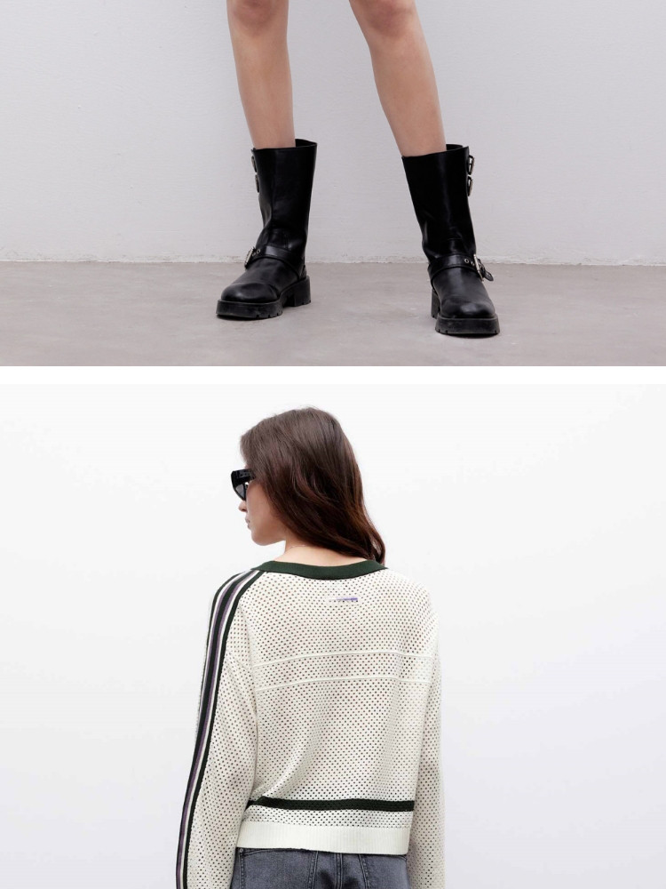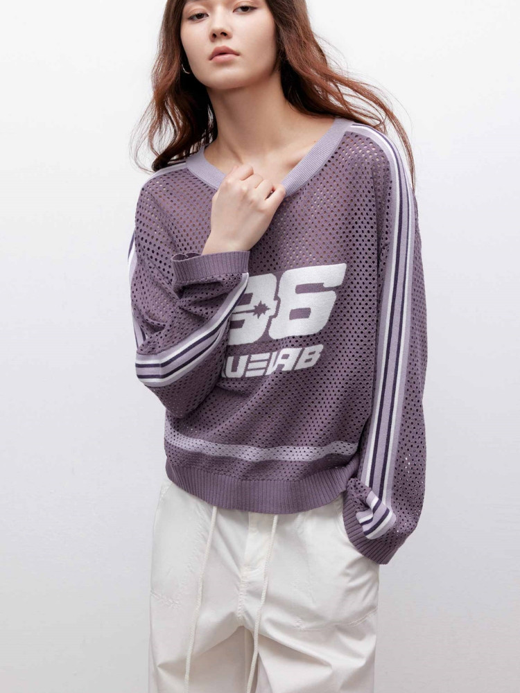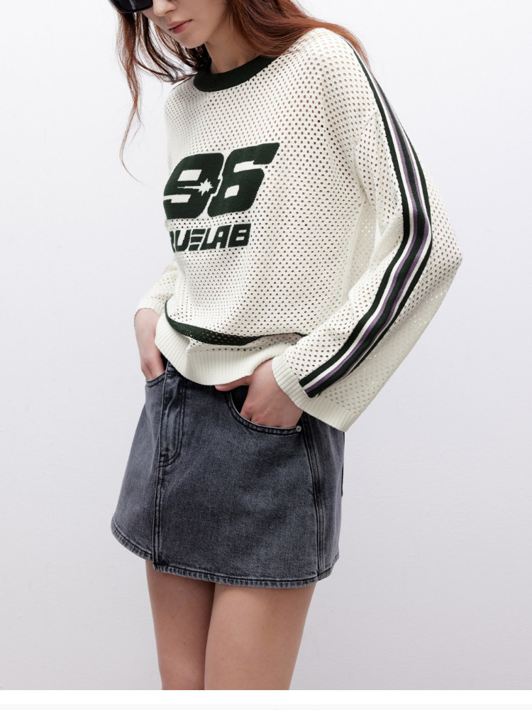 【宽松圆领】春季轻薄镂空宽松印花针织衫女 885082