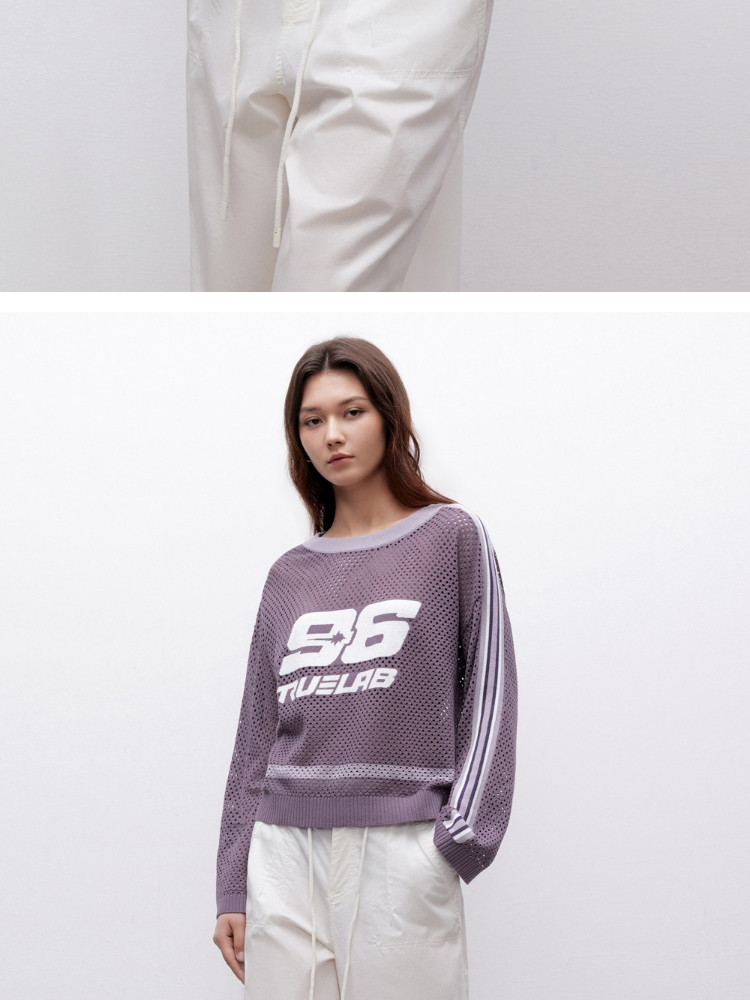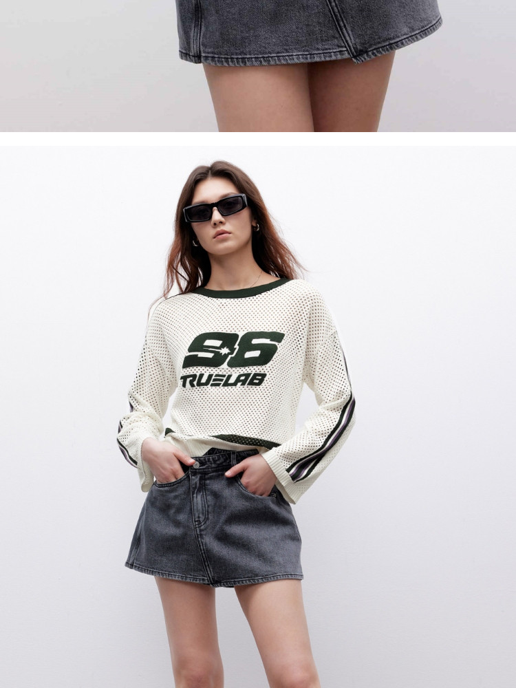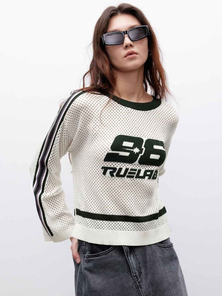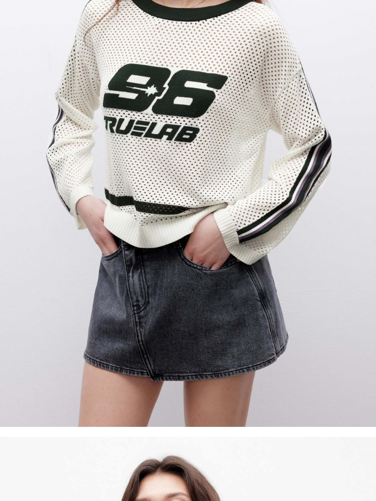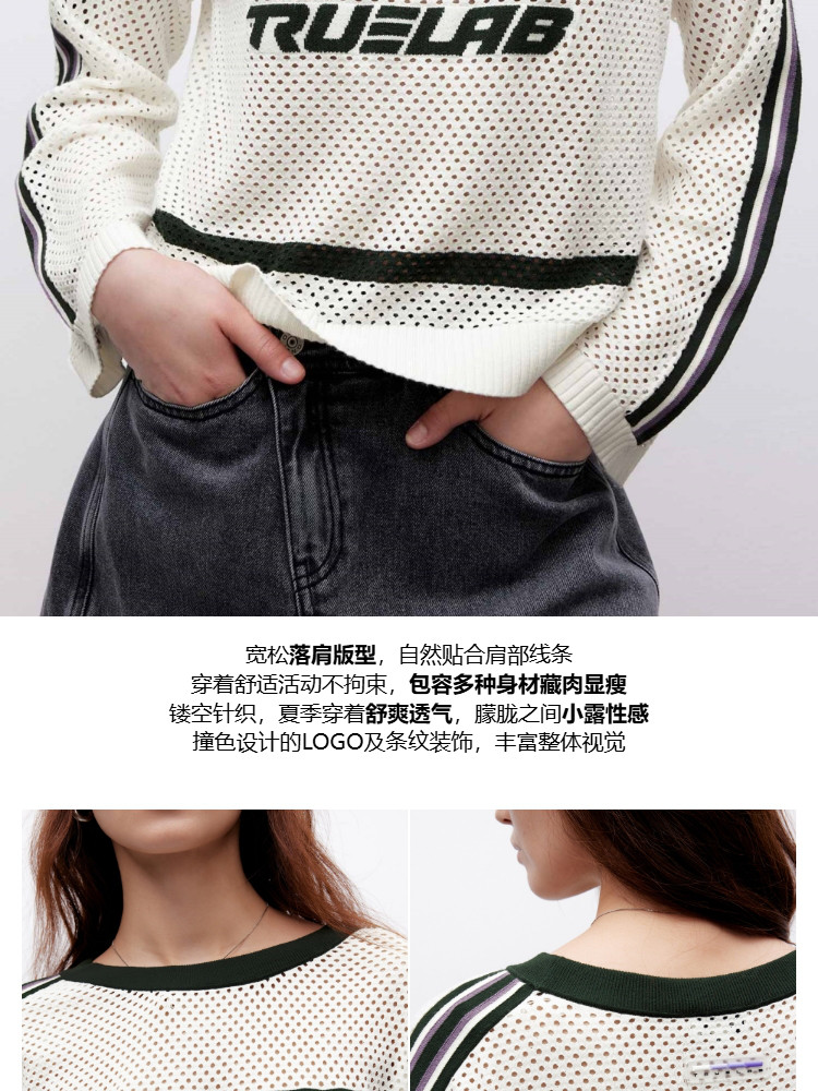 商品名称:【宽松圆领】春季轻薄镂空宽松印花针织衫女 885082